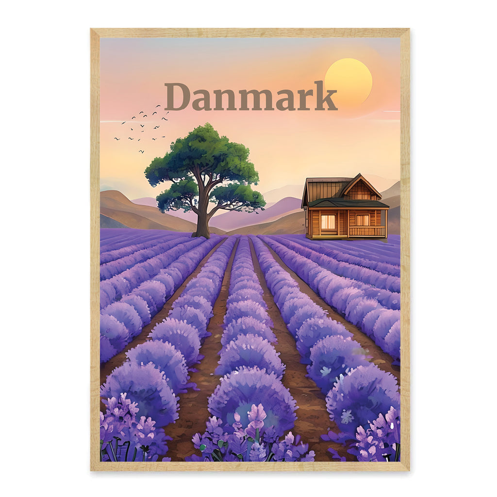 Danmark-plakat - Plakat med en båt på en lila-rosa sjö