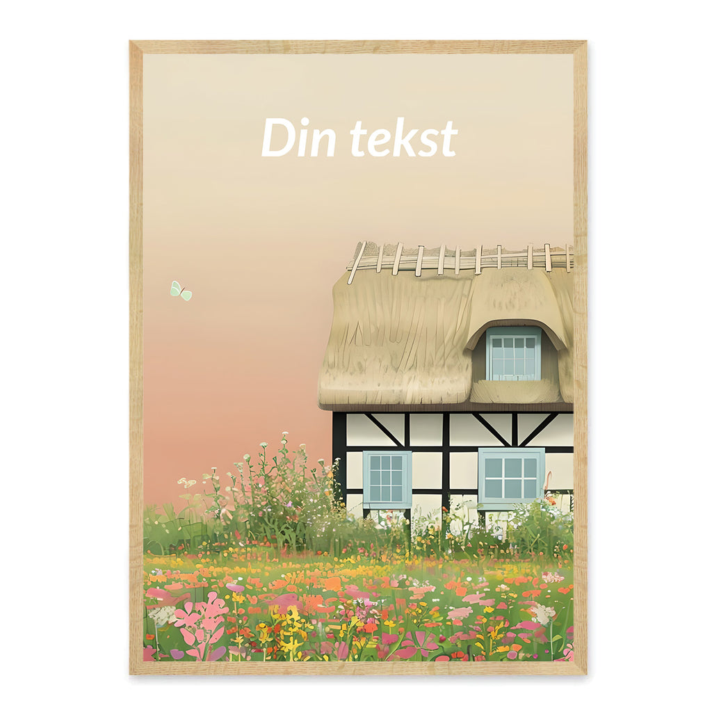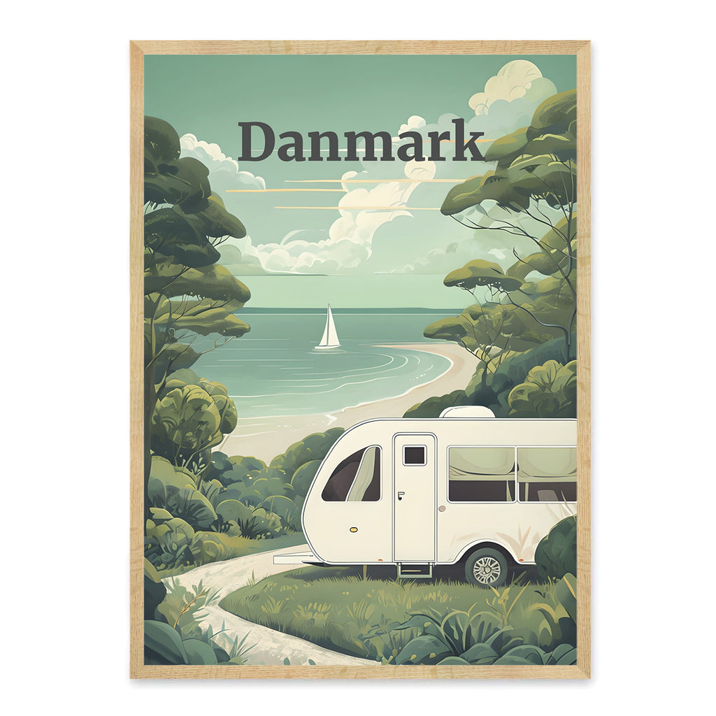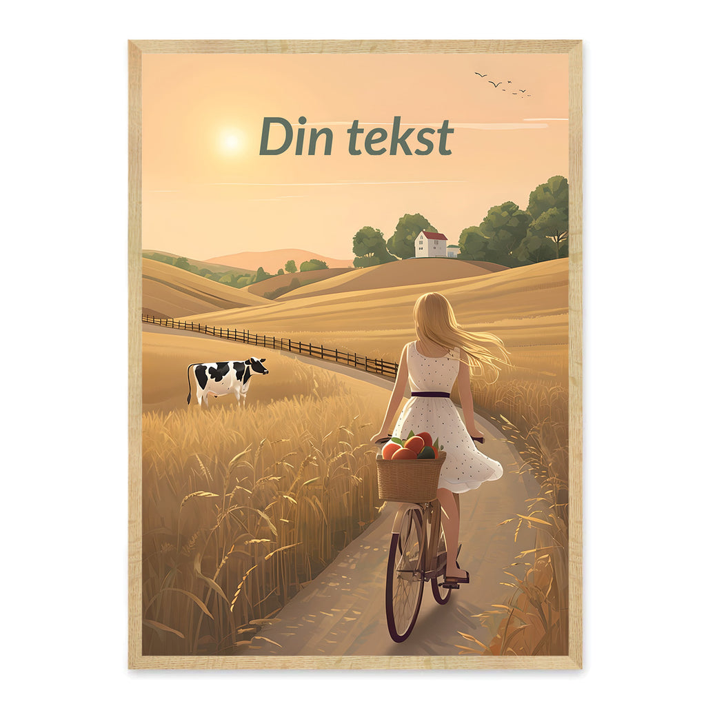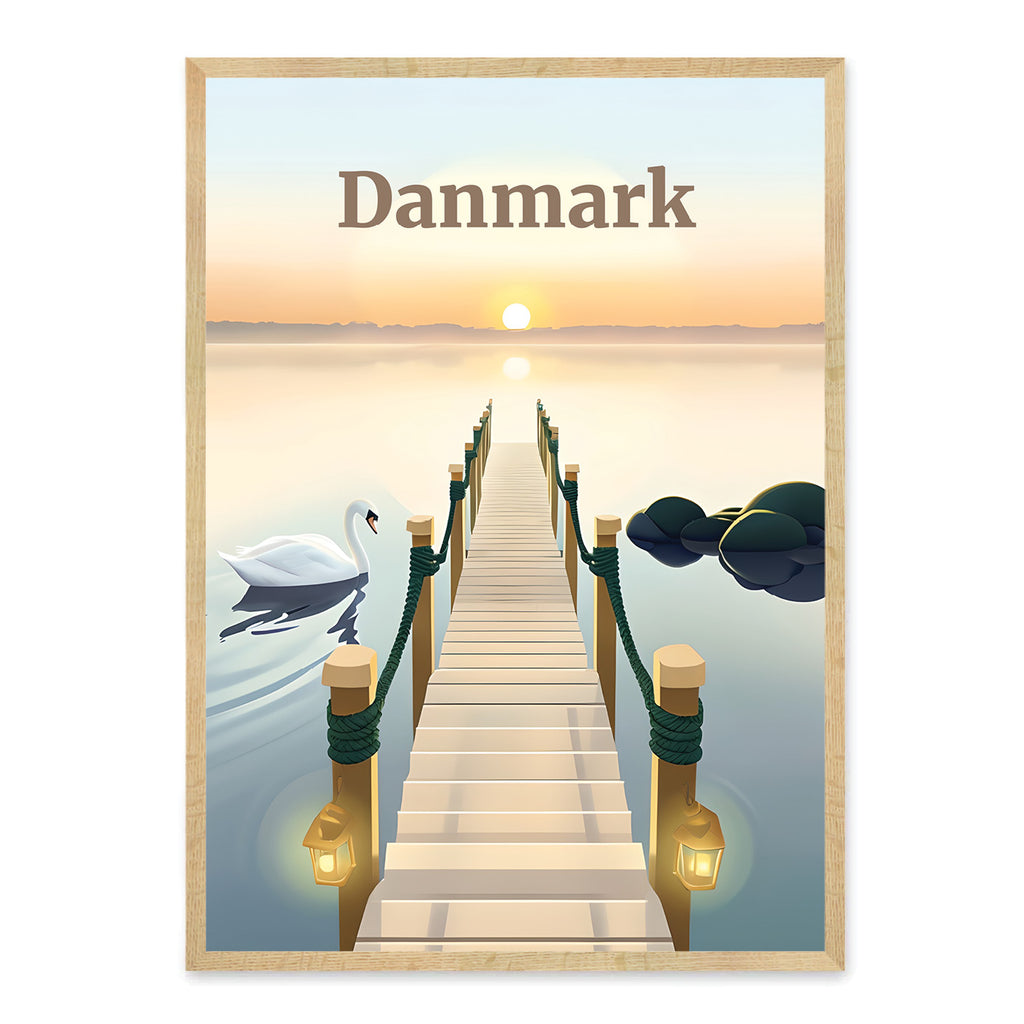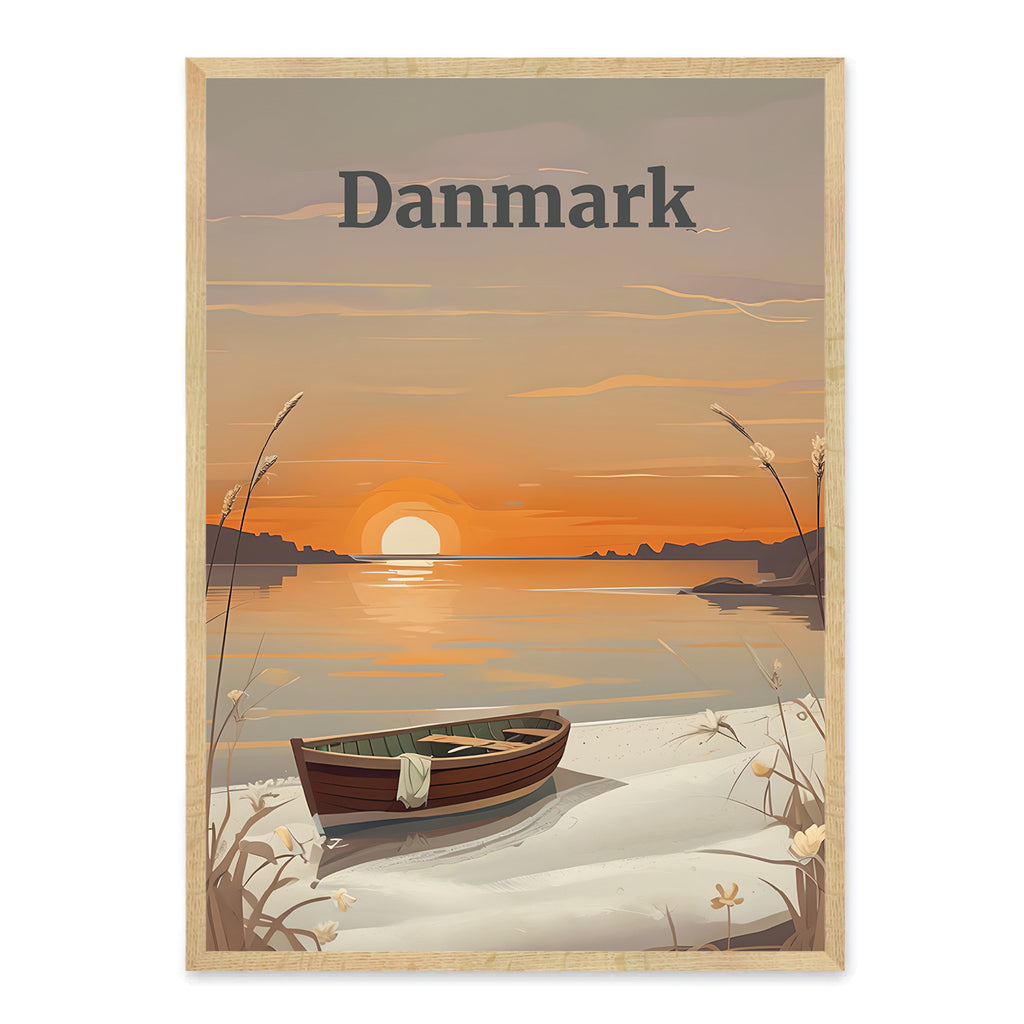 Danmark-plakat - Plakat föreställande ett höstlandskap med åkrar, får och hus.