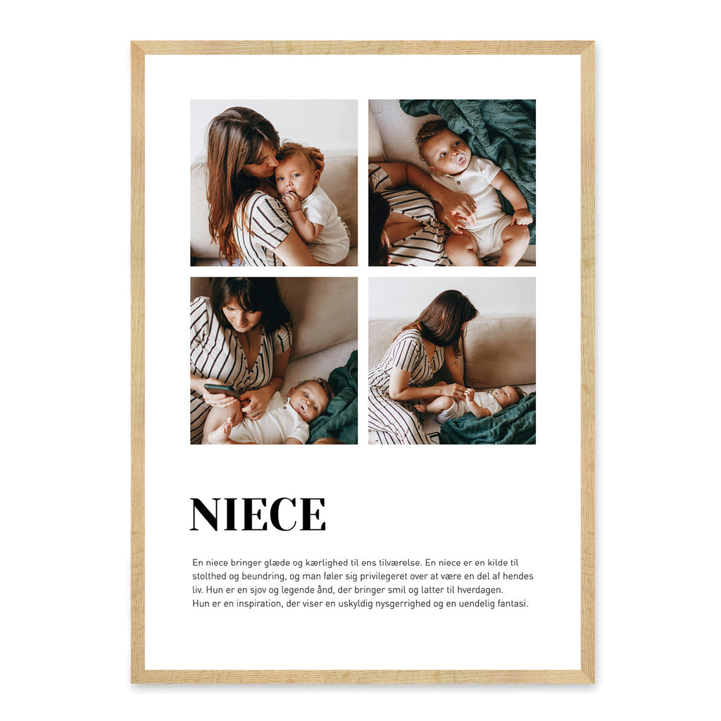 Giv din niece en personlig plakat, der viser, hvor meget hun betyder for dig. Denne plakat er sød, kærlig og unik – perfekt til at fejre det særlige bånd mellem onkel/tante og niece.