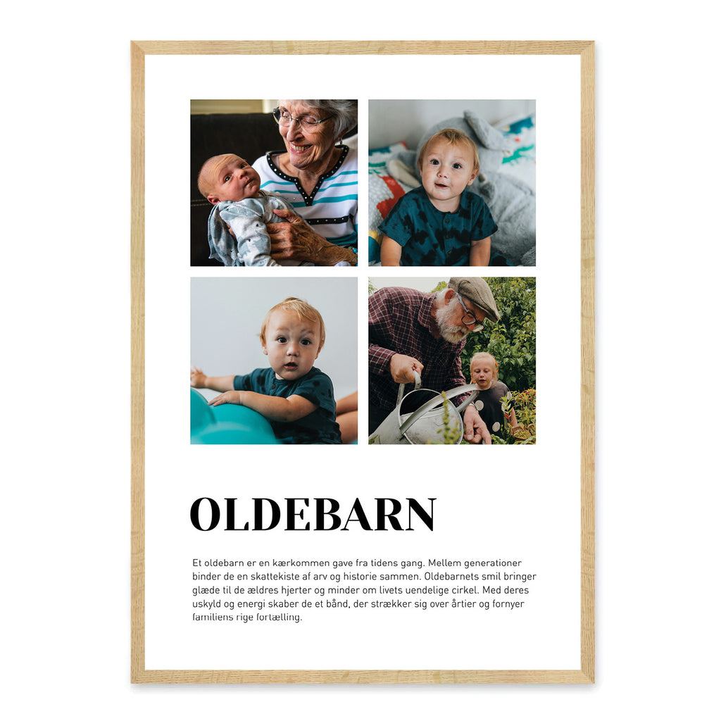 Giv dit oldebarn en personlig plakat, der viser, hvor meget det betyder for dig. Denne plakat er kærlig og unik – perfekt til at fejre det særlige bånd mellem oldeforælder og oldebarn.