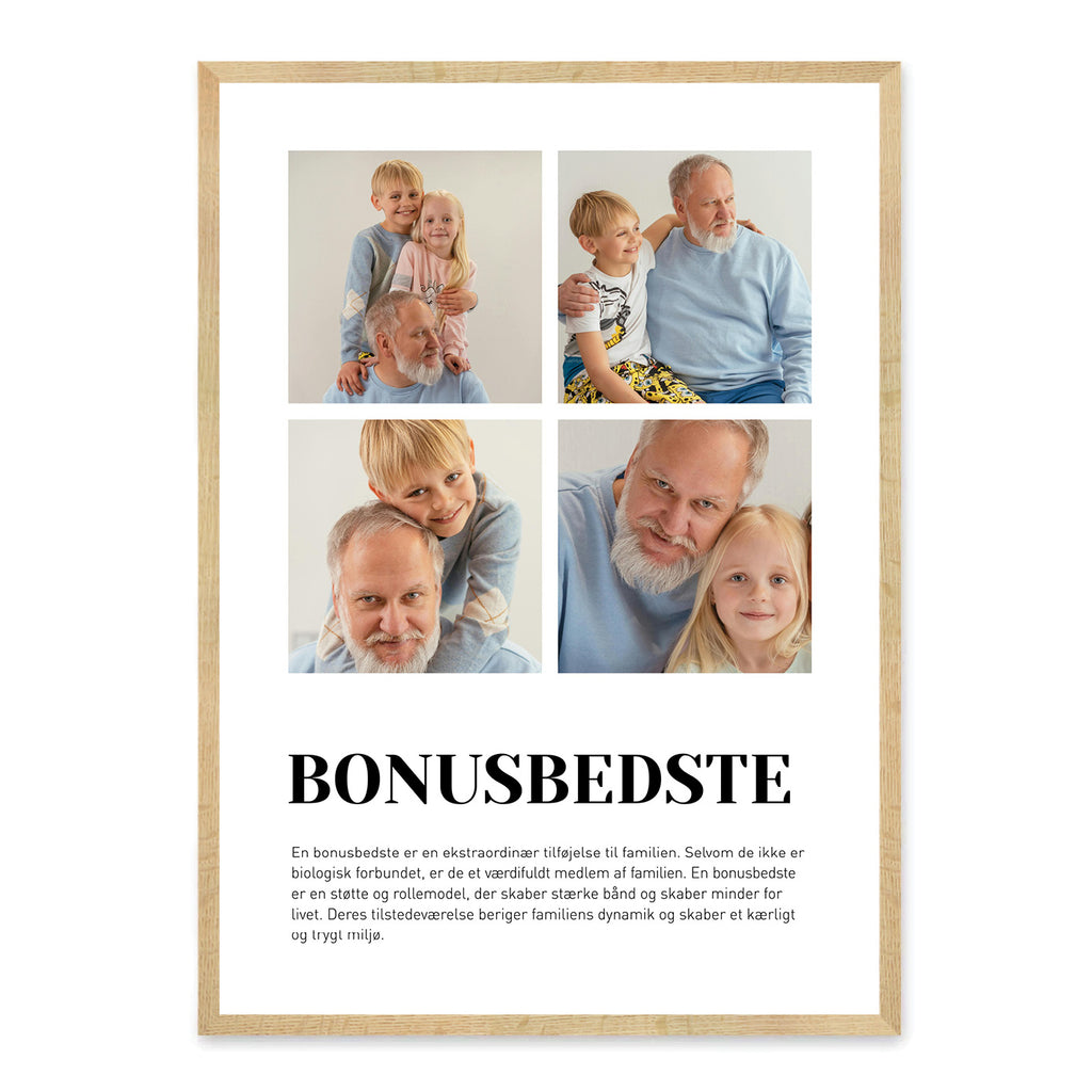 Fejr kærligheden og det særlige bånd til din bonusbedste med denne smukke plakat. Gør den personlig med egne billeder og tekst, så den afspejler minder, nærvær og de gode stunder, I deler sammen.