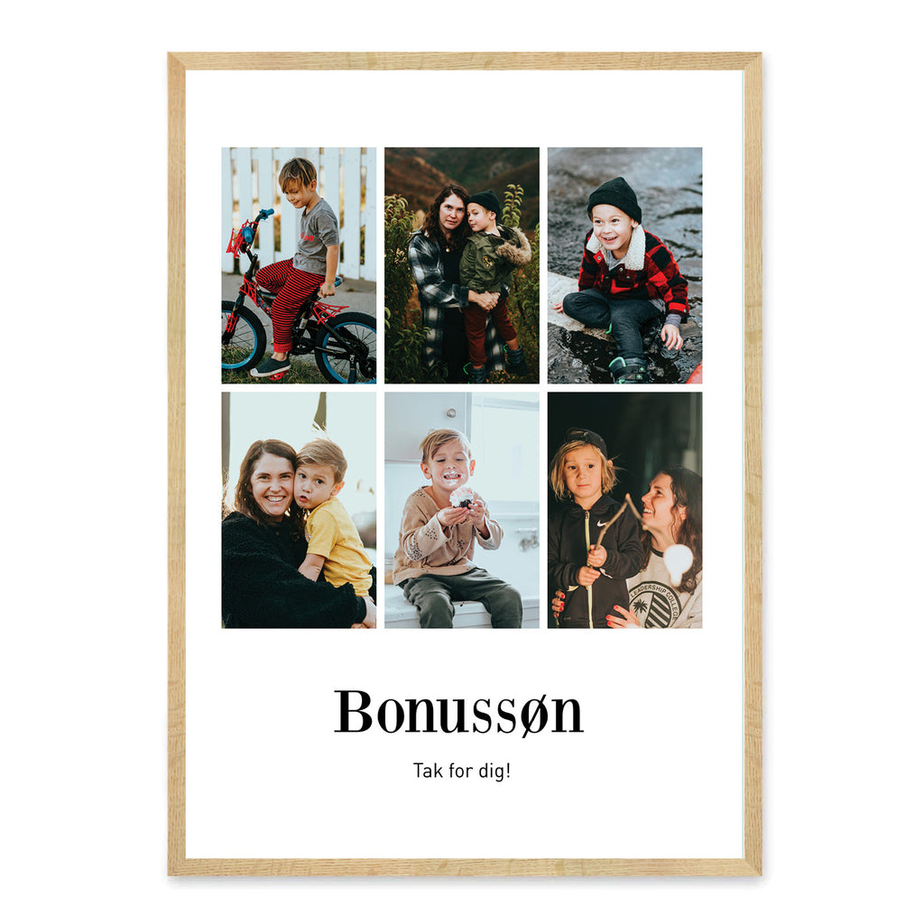 En bonussøn kommer ind i livet og skaber nye relationer, der vokser naturligt med tiden. Han bidrager med glæde, personlighed og små øjeblikke, der langsomt bliver til fælles minder. Denne plakat er skabt som en hyldest til det særlige bånd, som opstår, når man vælger hinanden som familie. Plakaten kan designes med 6 eller 9 billeder, en personlig titel og tekst, så den spejler jeres unikke historie.