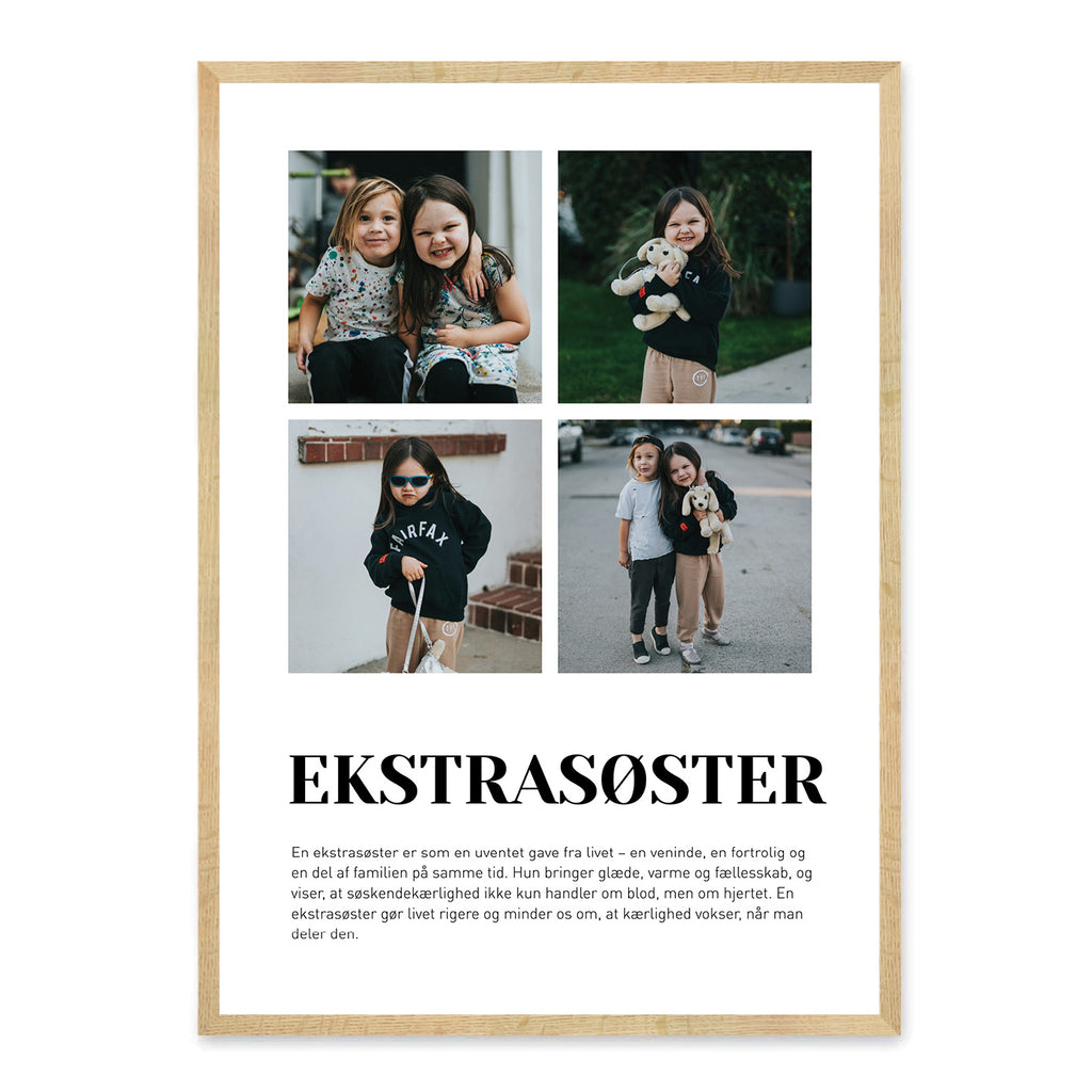 Fejr kærligheden og det særlige bånd til din ekstrasøster med denne smukke plakat. Gør den personlig med egne billeder og tekst, så den afspejler minder, nærvær og de gode stunder, I deler sammen.