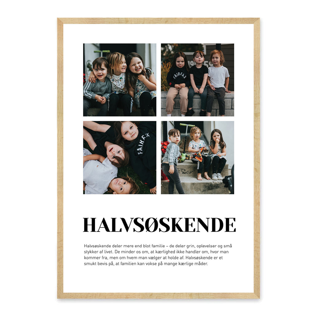 Fejr det særlige bånd til dine halvsøskende med denne smukke plakat. Gør den personlig med egne billeder og tekst, så den afspejler minder, nærvær og de gode stunder, I deler sammen.
