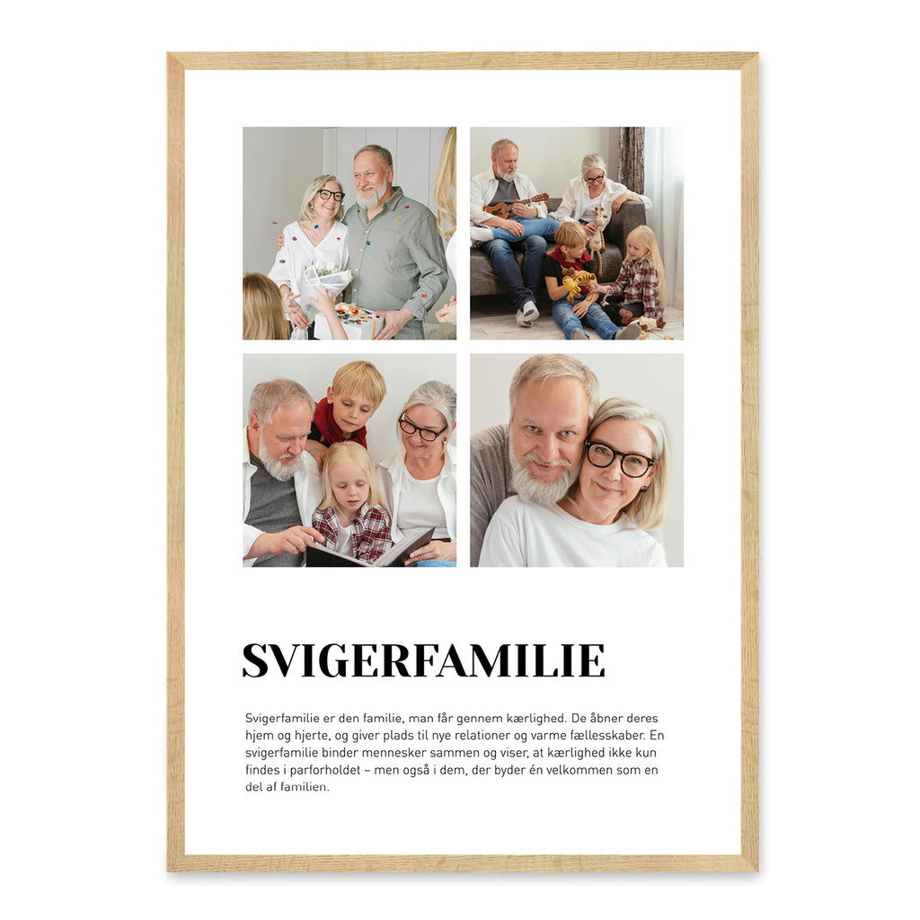 En Svigerfamilie-plakat er en smuk måde at vise kærlighed og taknemmelighed til din udvidede familie. Den symboliserer samvær, nærvær og de særlige bånd, der opstår, når familier smelter sammen.