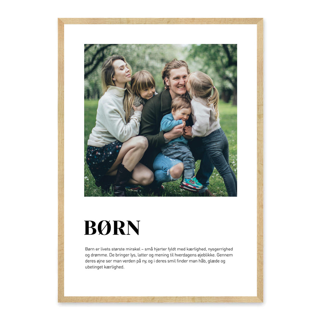 En Børn-plakat er en smuk måde at hylde dine børn og det særlige bånd, I deler. Den symboliserer omsorg, nærvær og de unikke øjeblikke, I oplever sammen som familie.