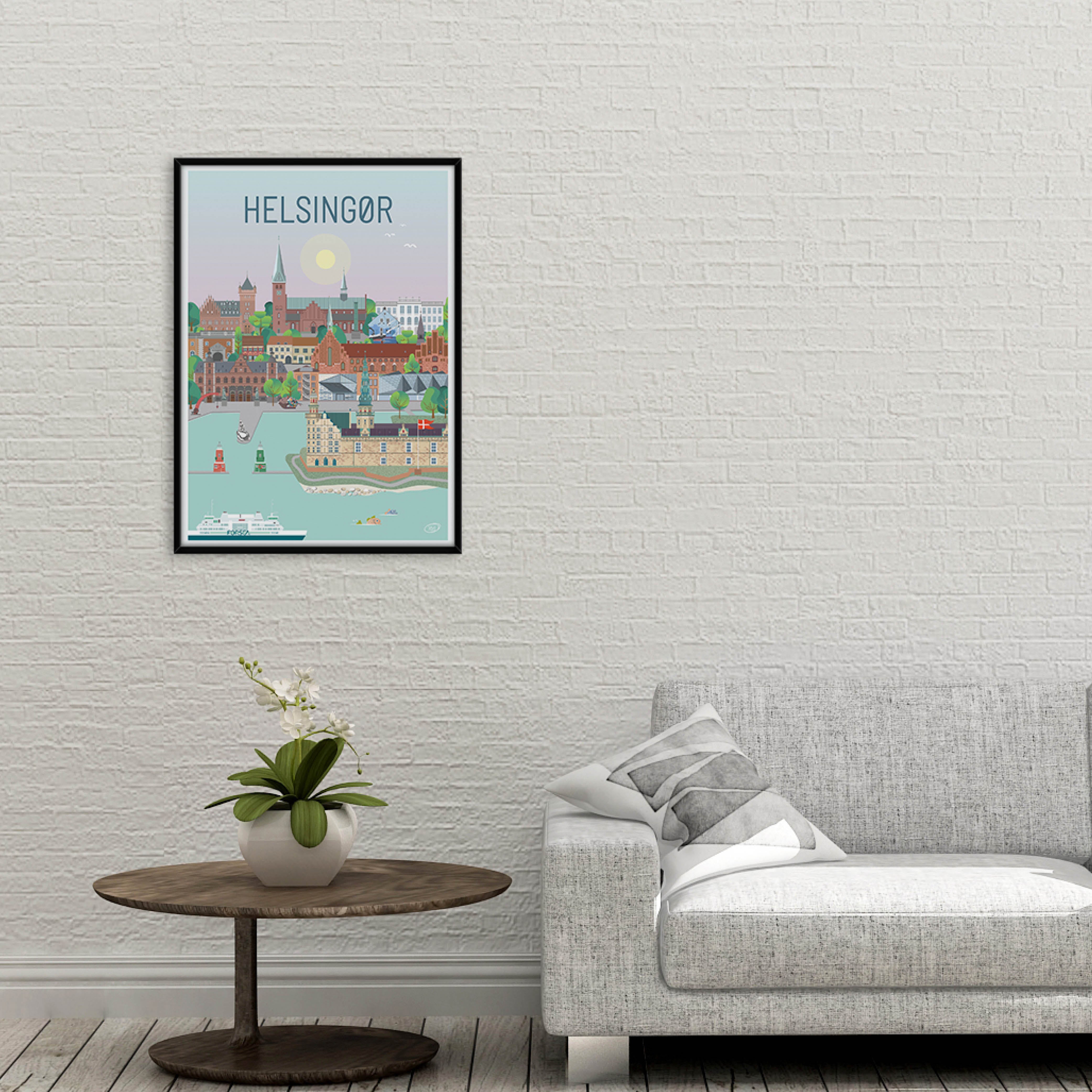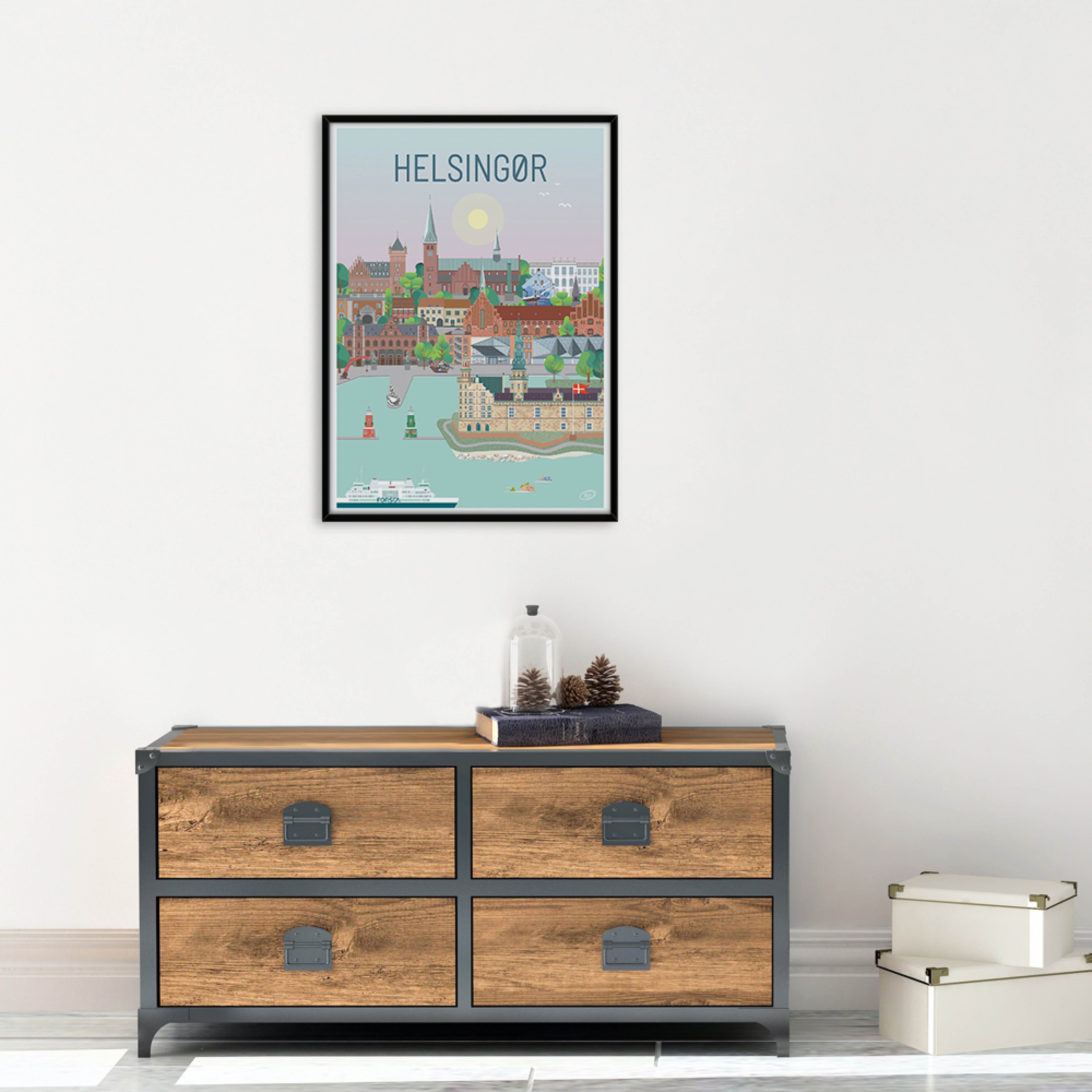 En vacker och detaljerad stadsaffisch utarbetad av Vilakula med motivet vackra Helsingör. Här har de fångat stämningen i staden samt flera av stadens vackra byggnader. Den vackra Helsingör-affischen är designad i ett färgstarkt universum som vackert kommer att dekorera väggarna i varje hem, och skapar en kontrast till de svartvita hemmen.