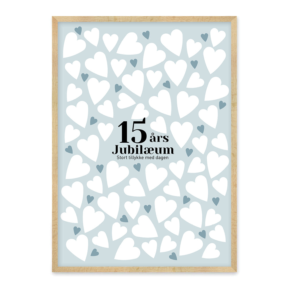 Markera ett starkt 20-årsjubileum med en unik gästplakat. Välj själv färger, antal hjärtan och skriv en personlig hälsning, så att plakaten speglar det speciella tillfället. En idealisk gåva till jubileer på arbetsplatsen eller i privatlivet, där 20 år ska firas med något speciellt och bestående.