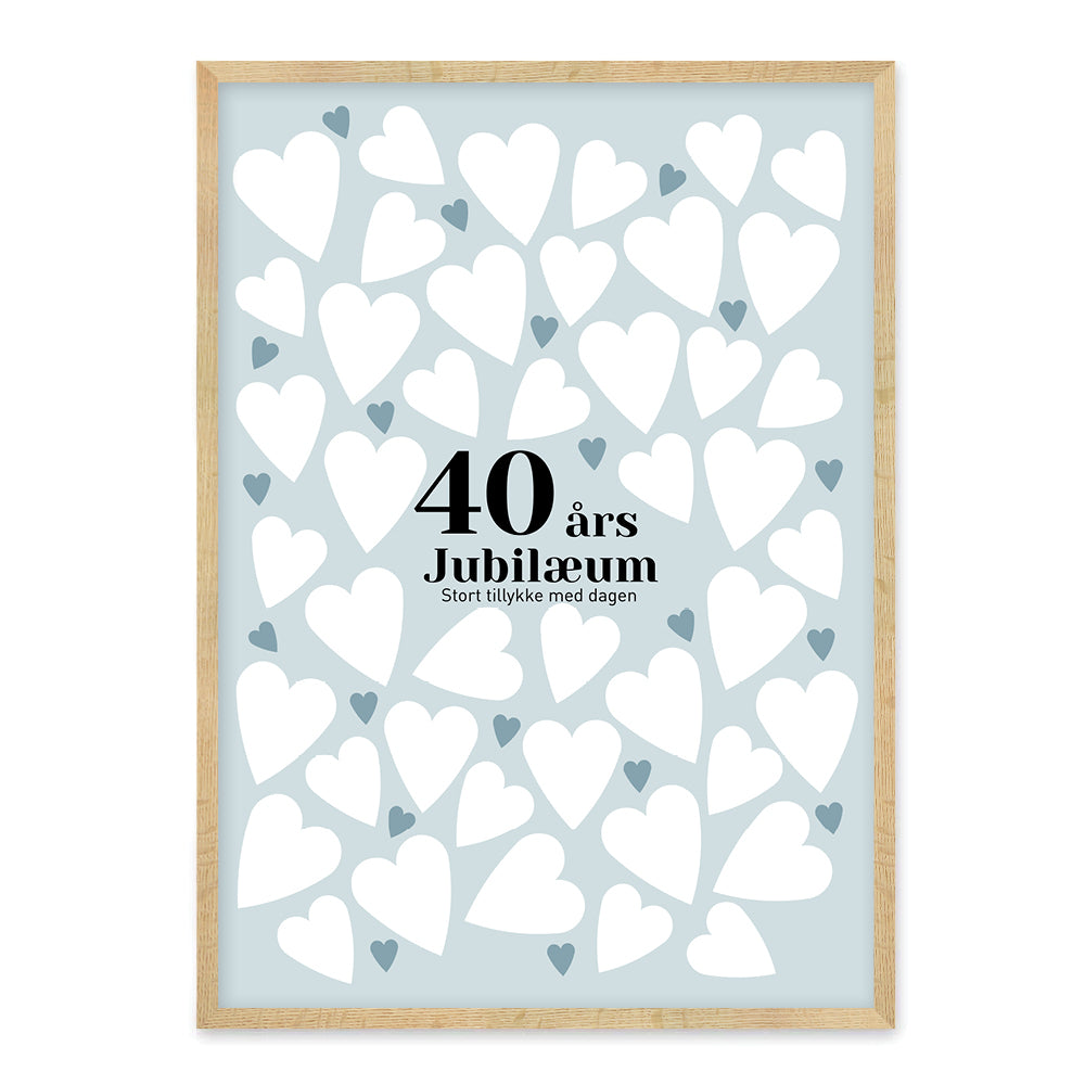 Ett kvartssekel är verkligen något speciellt! Med en 25-årsjubileumsposter får du en personlig gästbok med hjärtan, som kan anpassas i färg och antal. Skriv din egen hälsning och gör den till en gåva som varar – perfekt för silverjubileum, personalfester eller privata tillfällen.