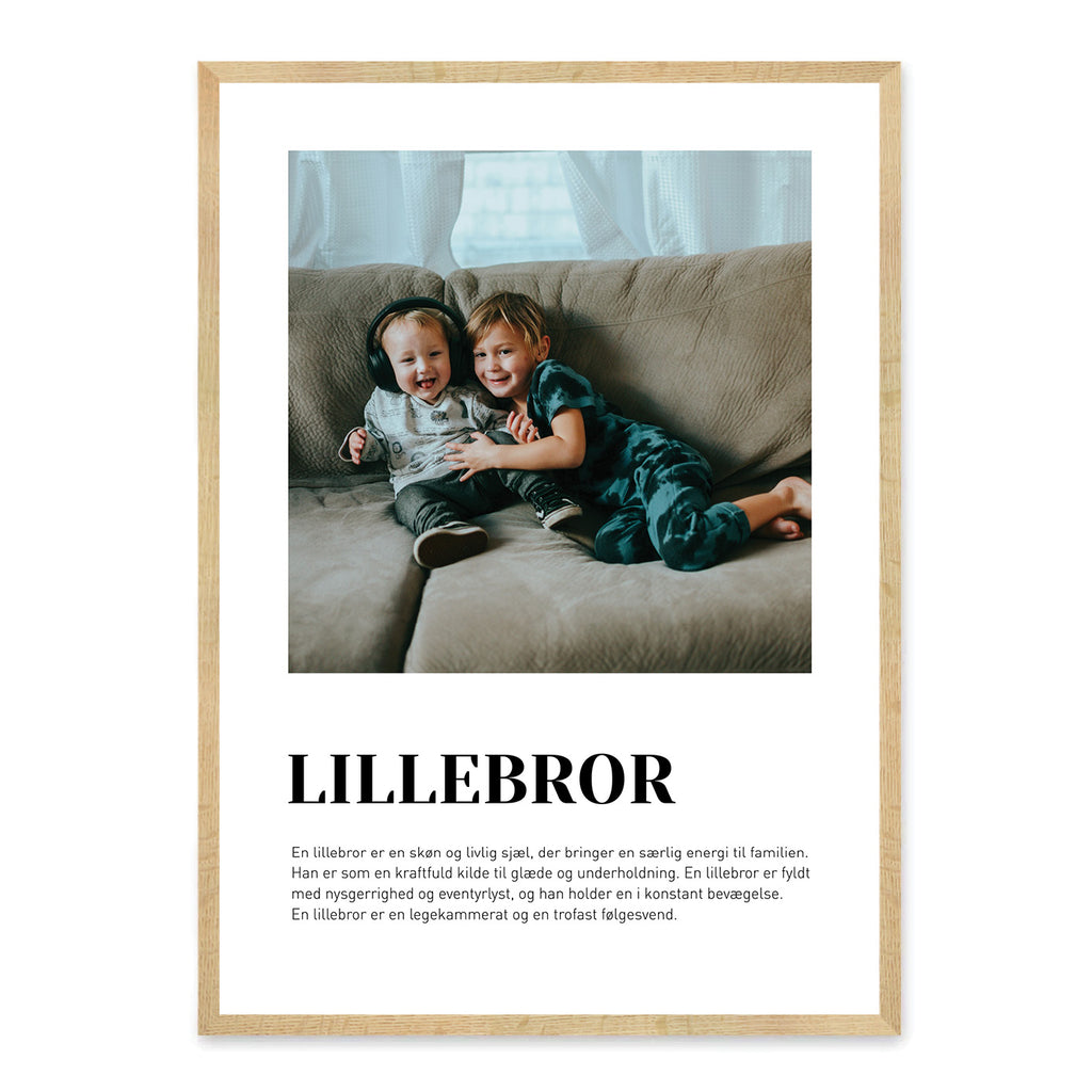 En Lillebror-plakat er en kærlig måde at hylde den helt særlige relation, du har til din lillebror – hvad enten han altid har været din bedste legekammerat, din trofaste makker eller den, du passer lidt ekstra på. Den indfanger de minder, grin og små øjeblikke, der gør jeres søskendebånd unikt. Plakaten er en smuk måde at vise, hvor meget han betyder for dig, og hvilken vigtig plads han har i dit liv.