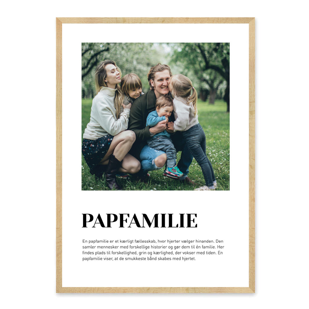 En Papfamilie-plakat er en kærlig måde at hylde den helt særlige relation, du har til din papfamilie – uanset om I er vokset sammen over tid eller først har fundet hinanden senere. Den fremhæver de minder, grin og små øjeblikke af nærhed, der binder jer sammen som familie, og viser, hvor stor betydning hver enkelt har i dit liv.