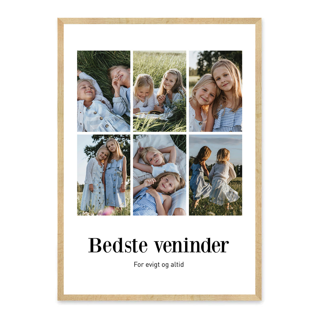 Bedste veninder er dem, der får livet til at føles lettere – dem man kan grine med, græde med og dele de øjeblikke, der betyder mest. Denne plakat er skabt som en hyldest til jeres venskab og alle de minder, der binder jer sammen på den helt særlige måde, kun veninder kan. Plakaten kan designes med 6 eller 9 billeder, en personlig titel og tekst, som fanger jeres energi og historie.