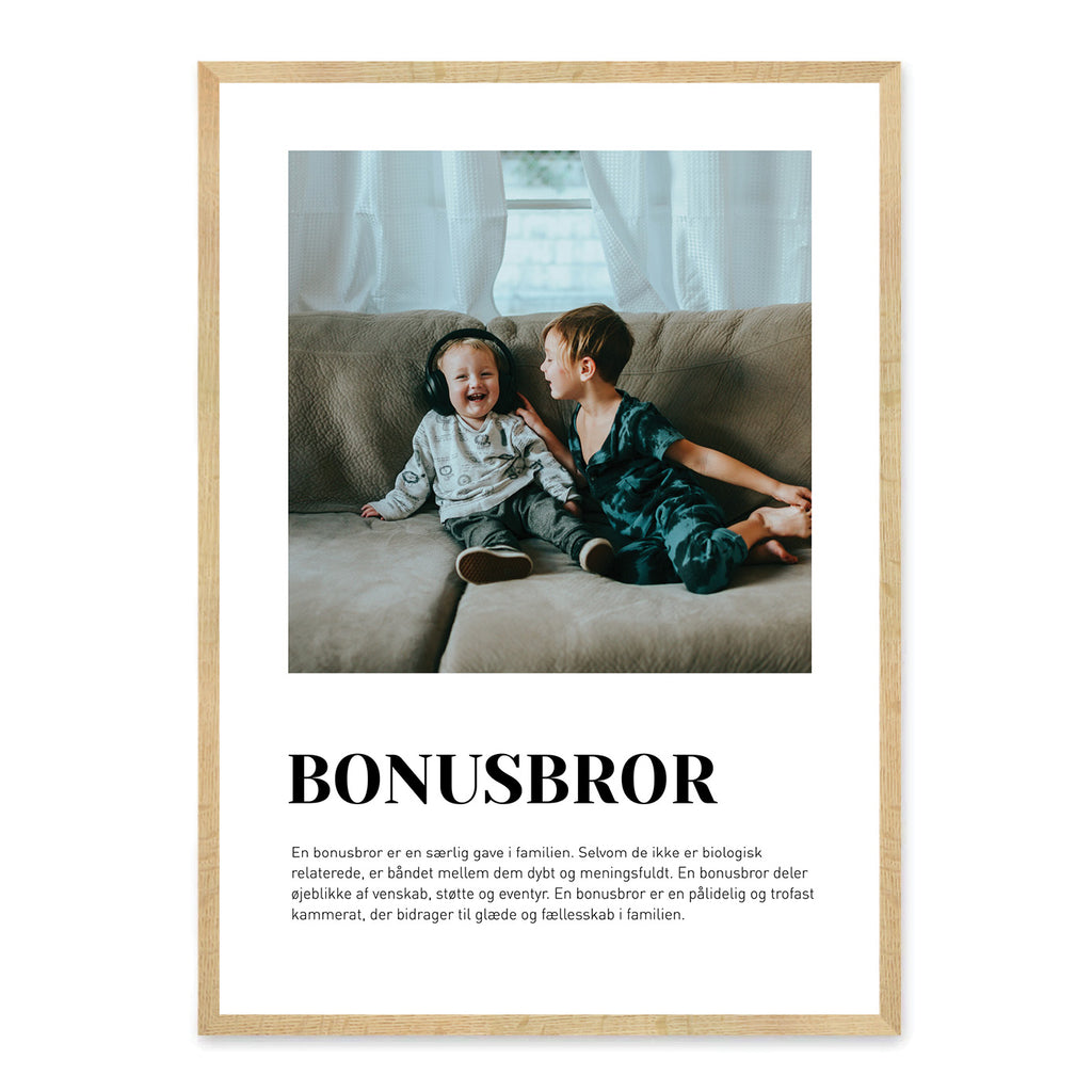 En Bonusbror-plakat er en smuk måde at hylde din bonusbror og det særlige bånd, I deler. Den symboliserer omsorg, nærvær og de unikke øjeblikke, I oplever sammen som familie.