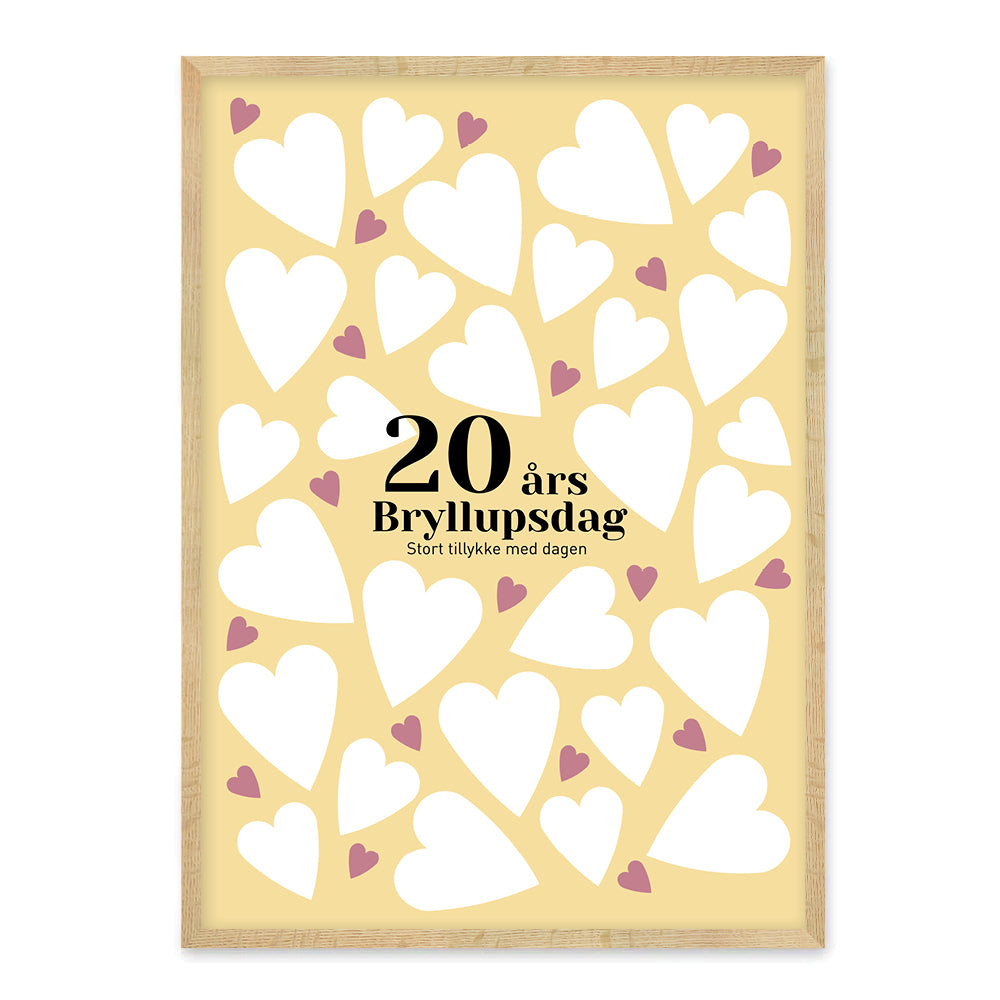 Efter 15 år tillsammans firar man kristallbröllop, där kärleken står klar och stark. Denna gästbok gör jubileet ännu minnesvärdare. Gästerna kan skriva korta hälsningar i hjärtana, så ni får ett personligt minne som varar livet ut. Plakaten kan anpassas i färg och antal hjärtan, och ni kan lägga till er egen text. En vacker presentidé och ett varaktigt symbol på er resa tillsammans.