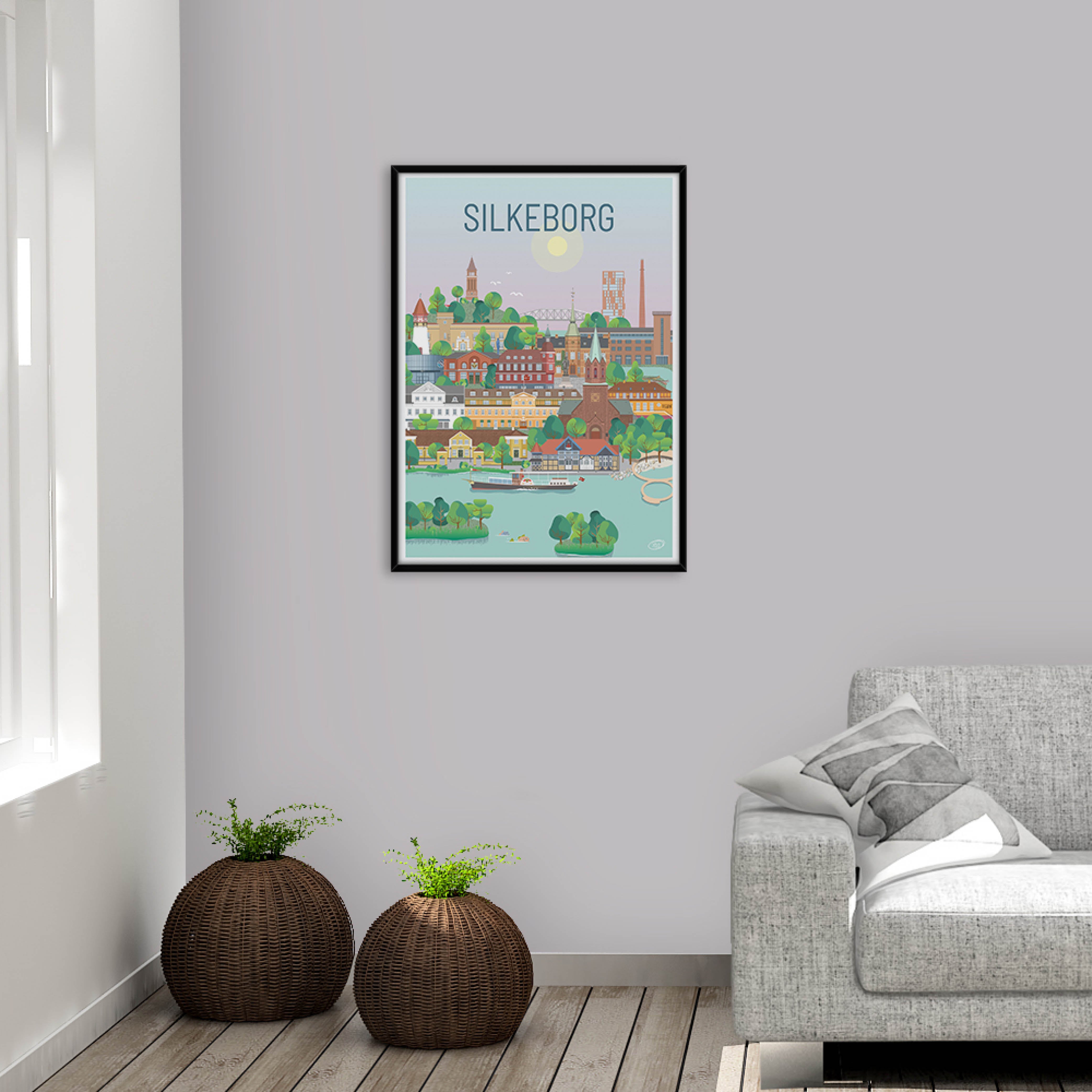 En vacker och detaljerad stadsaffisch utarbetad av Vilakula med motiv av vackra Silkeborg. Här har de fångat stämningen i staden samt flera av stadens vackra byggnader. Den vackra Silkeborg poster är designad i ett färgstarkt universum som vackert kommer att dekorera väggarna i alla hem, och skapar en kontrast till de svartvita hemmen.