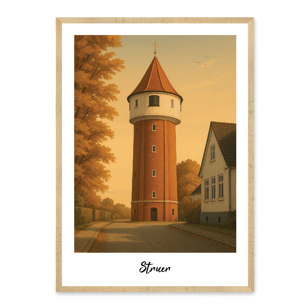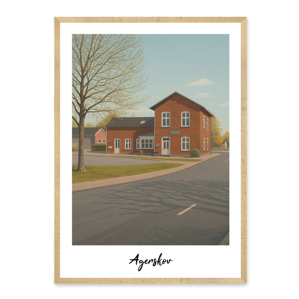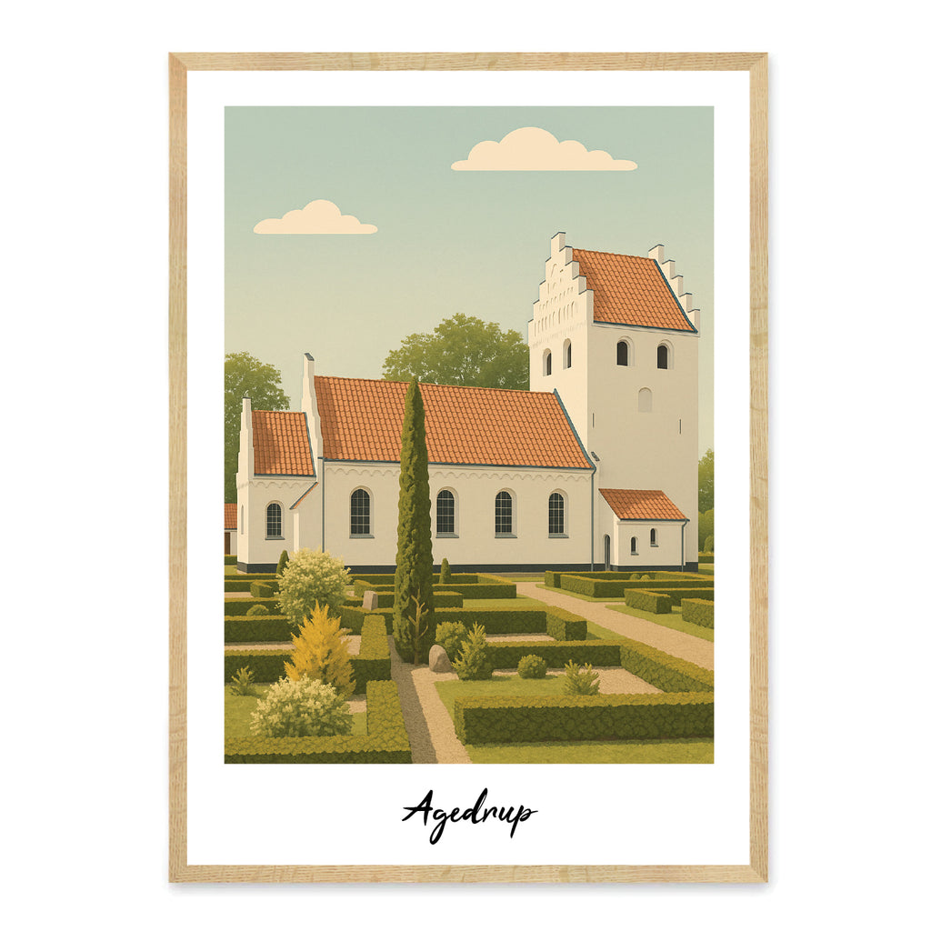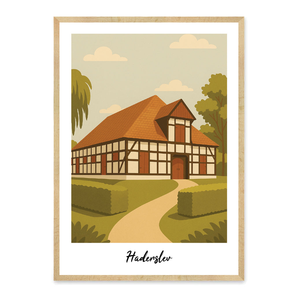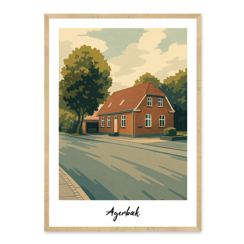 Danmark-plakat - Plakat föreställande ett höstlandskap med åkrar, får och hus.