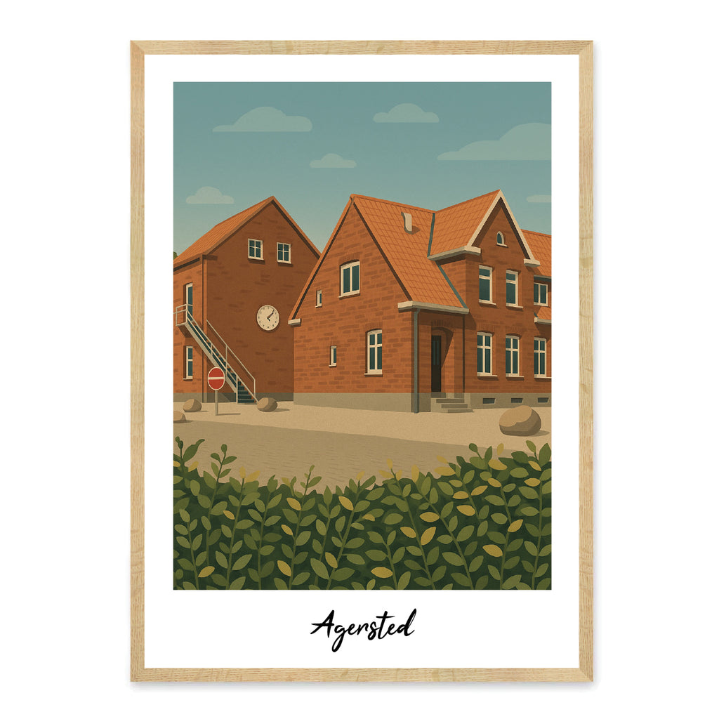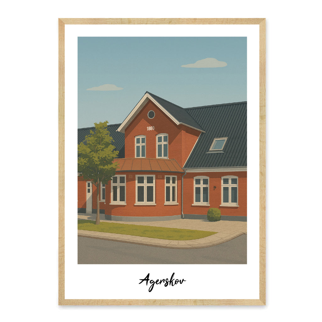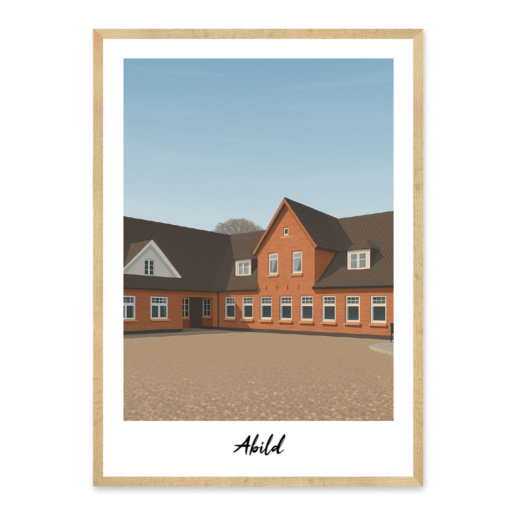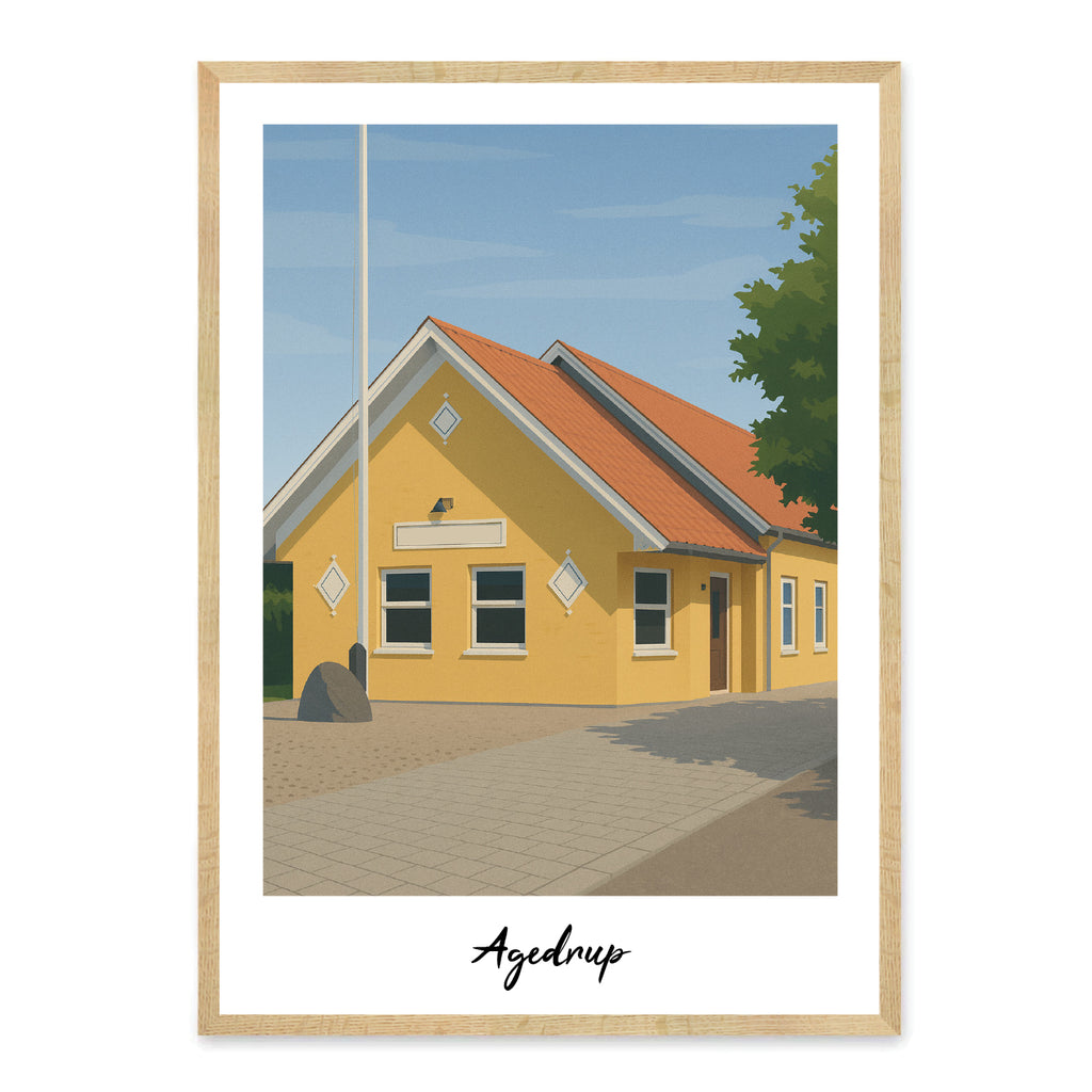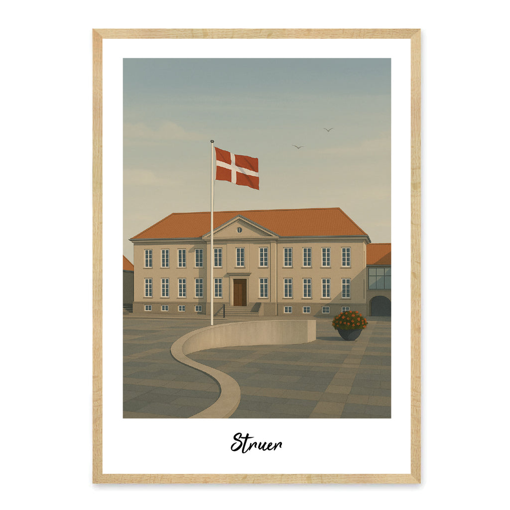 Danmark-plakat - Plakat föreställande ett höstlandskap med åkrar, får och hus.