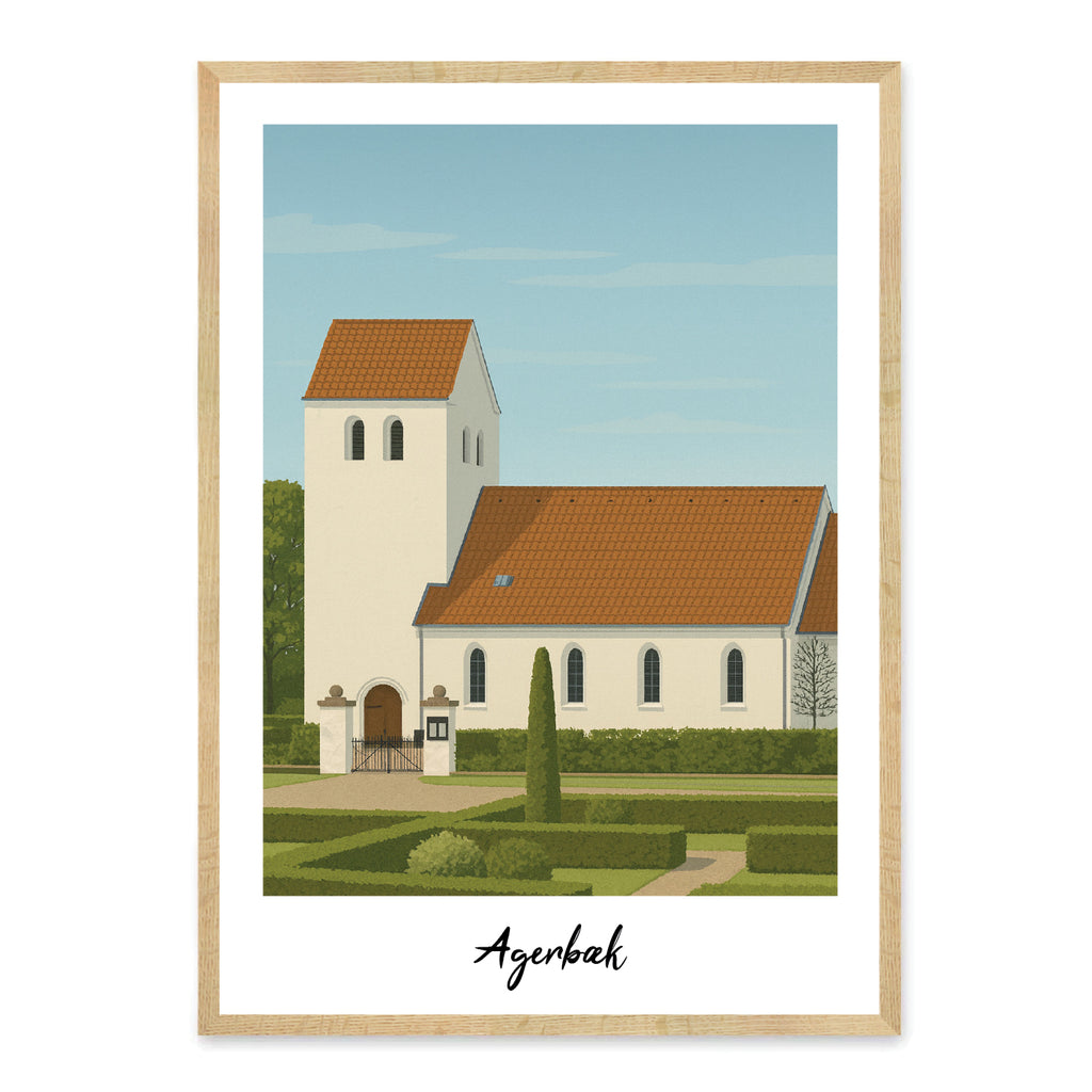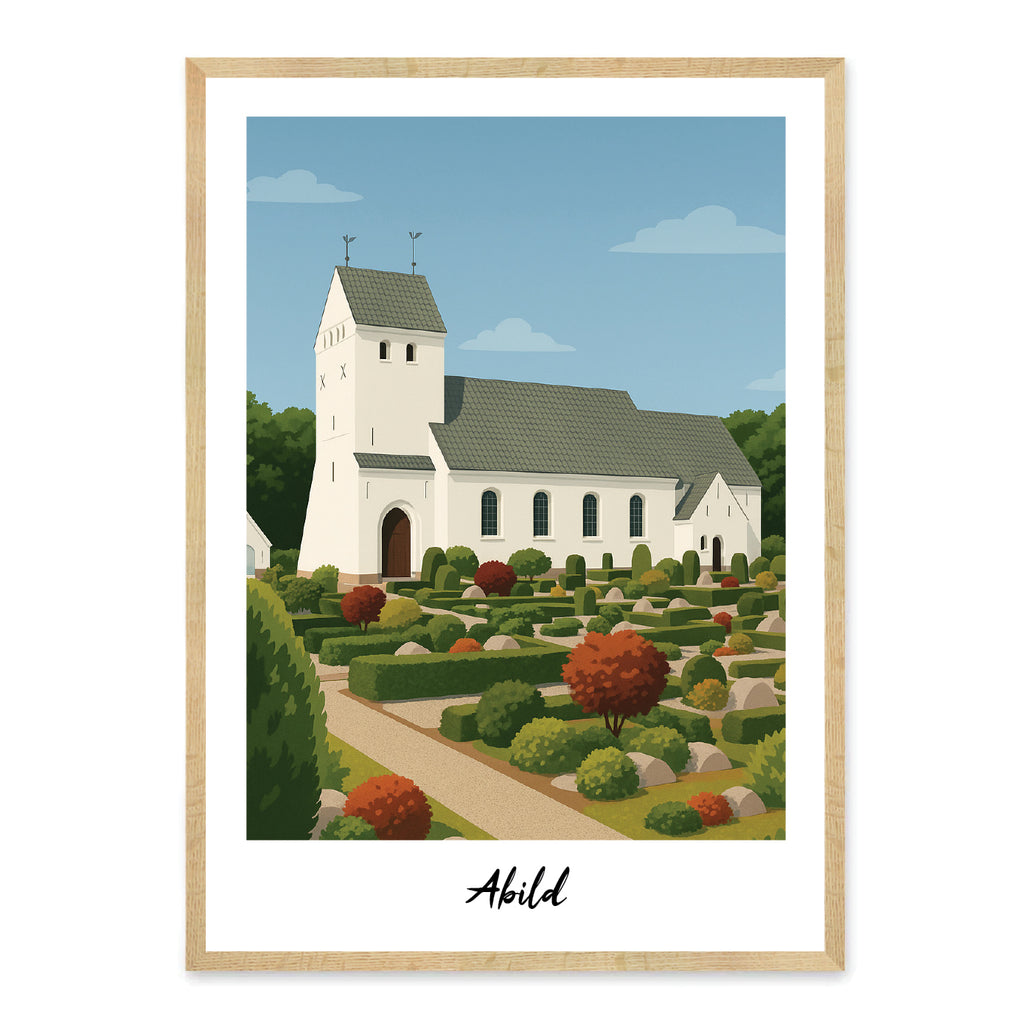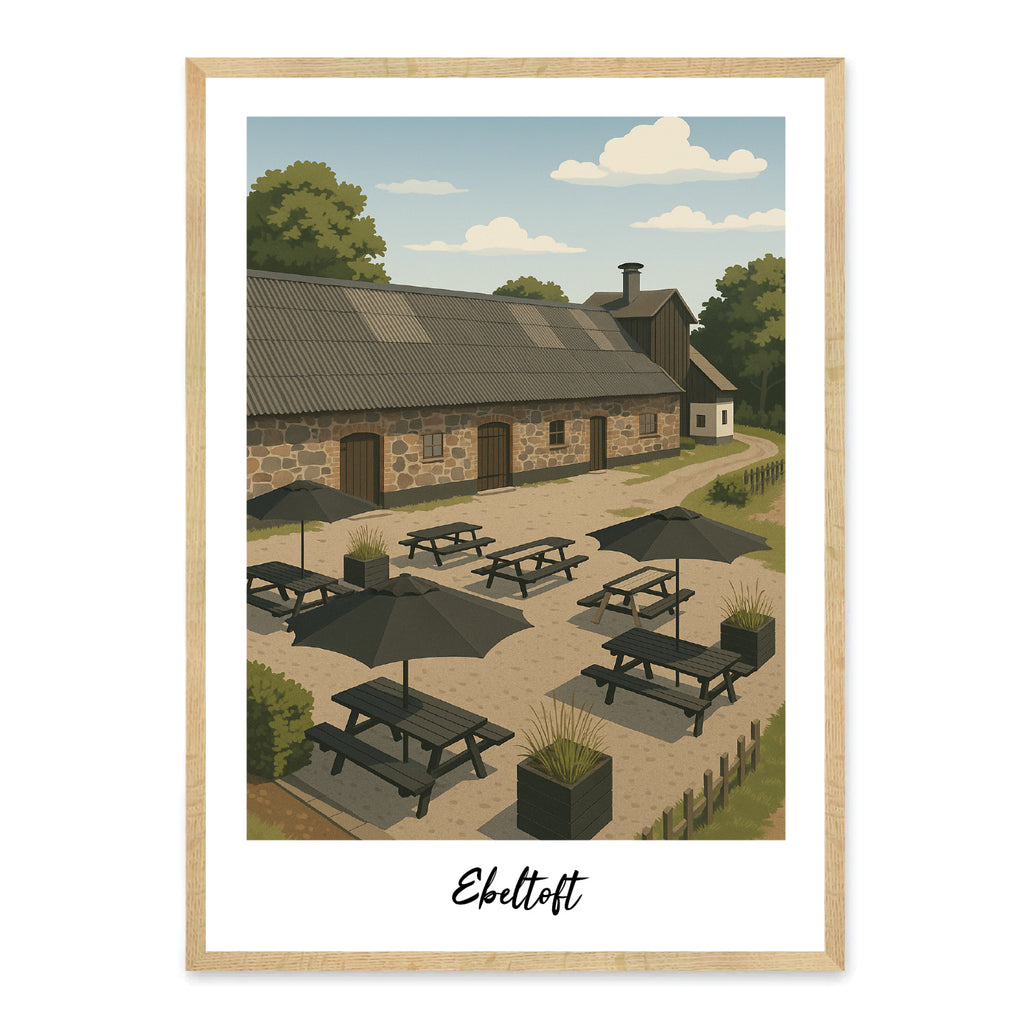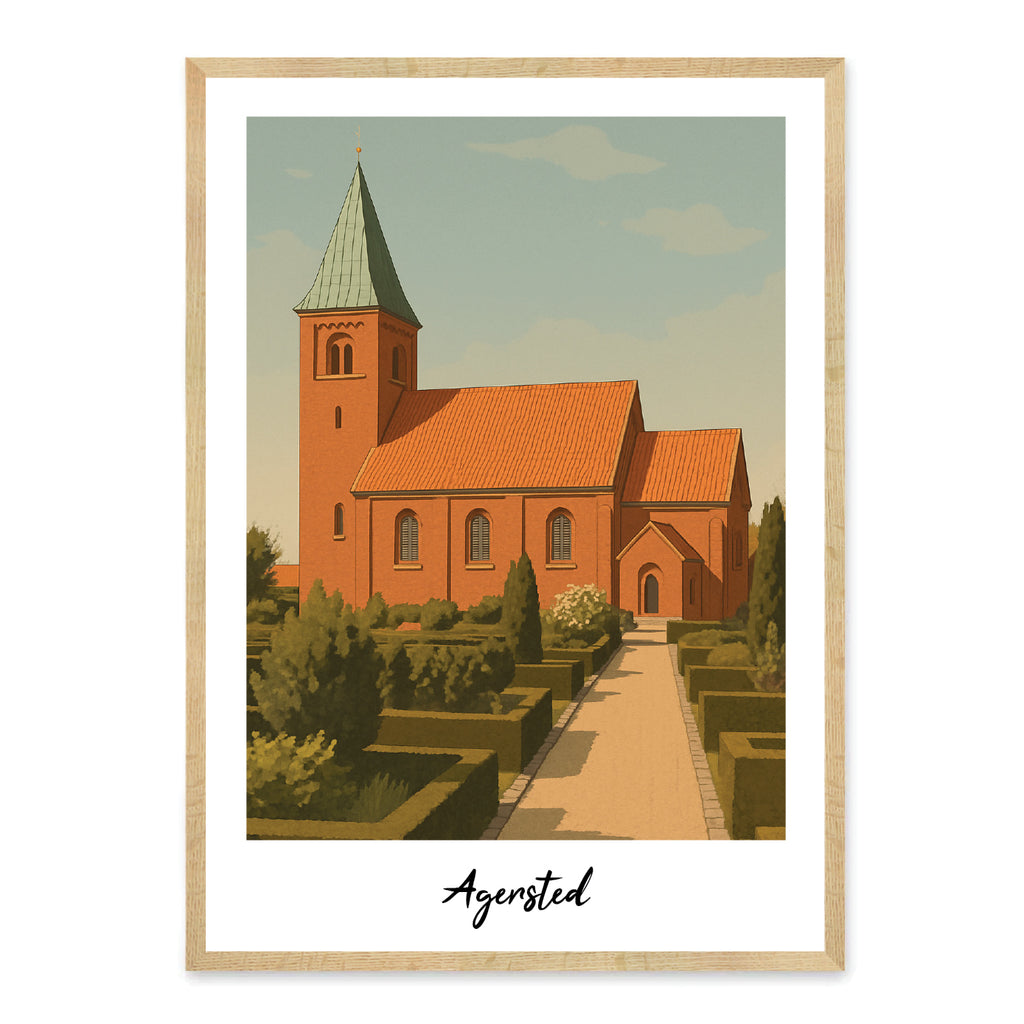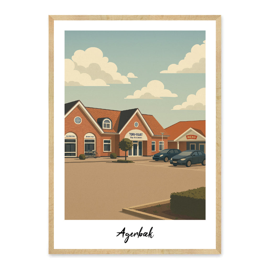 Danmark-plakat - Plakat föreställande ett höstlandskap med åkrar, får och hus.
