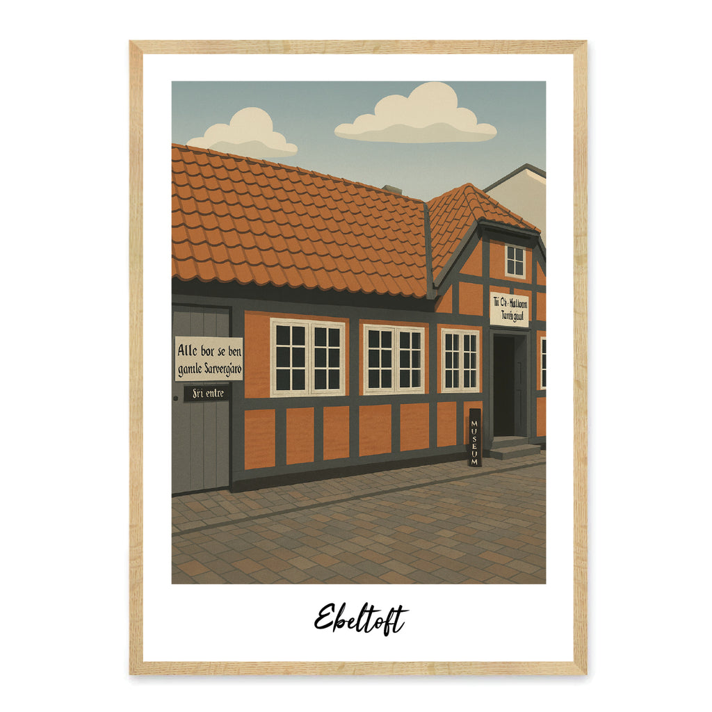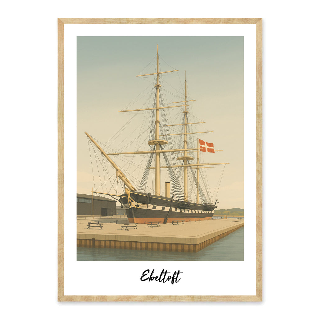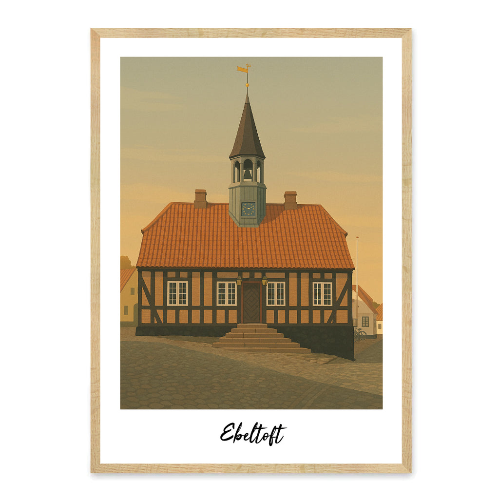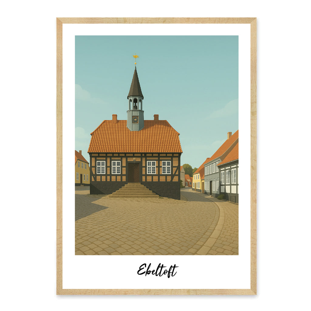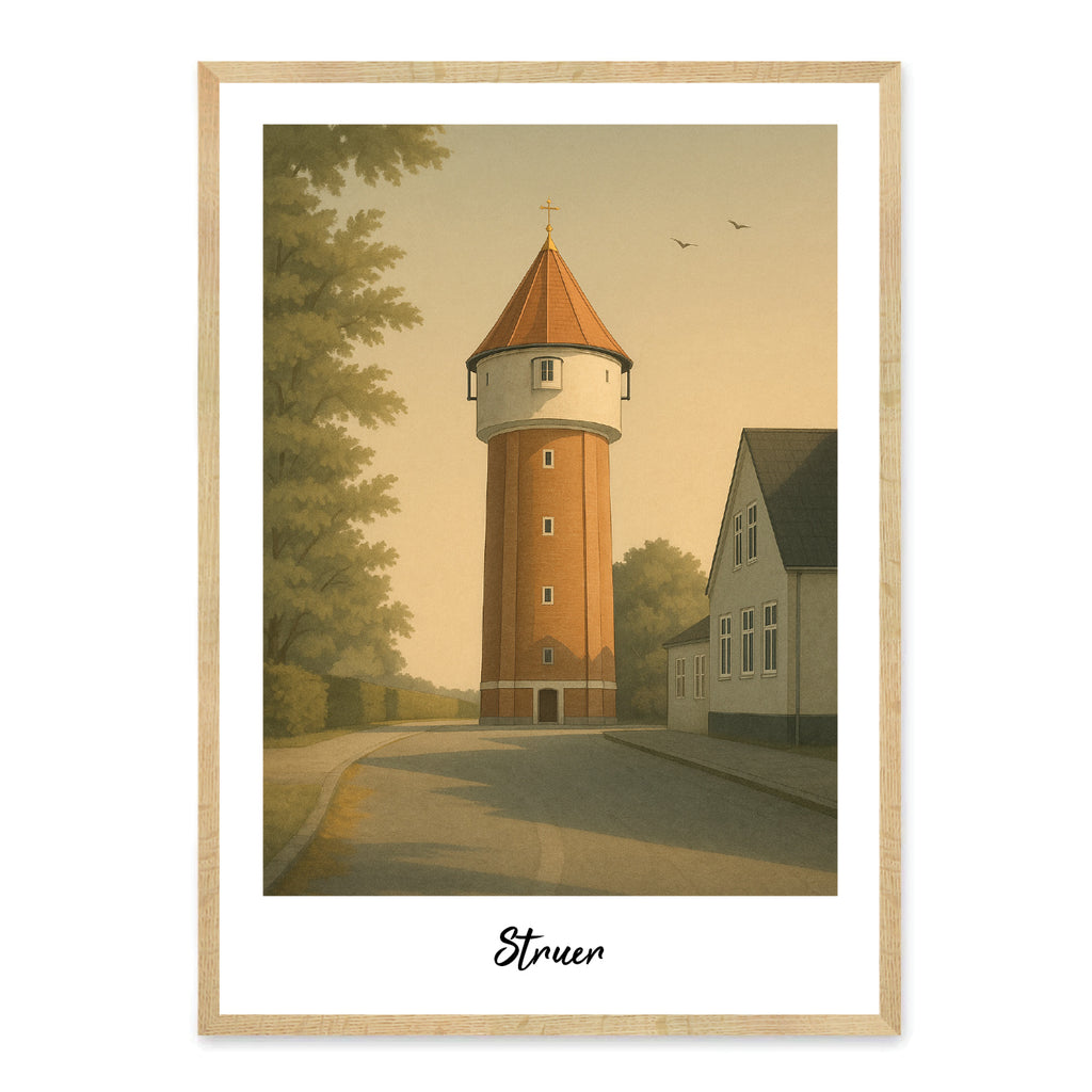 Danmark-plakat - Plakat föreställande ett höstlandskap med åkrar, får och hus.