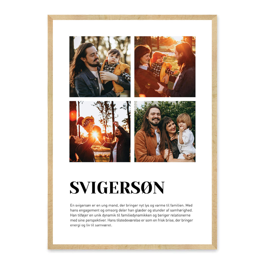En Svigersøn-plakat er en smuk måde at hylde det særlige forhold til din svigersøn. Den symboliserer respekt, varme og det bånd, der vokser gennem samvær, oplevelser og gode minder.