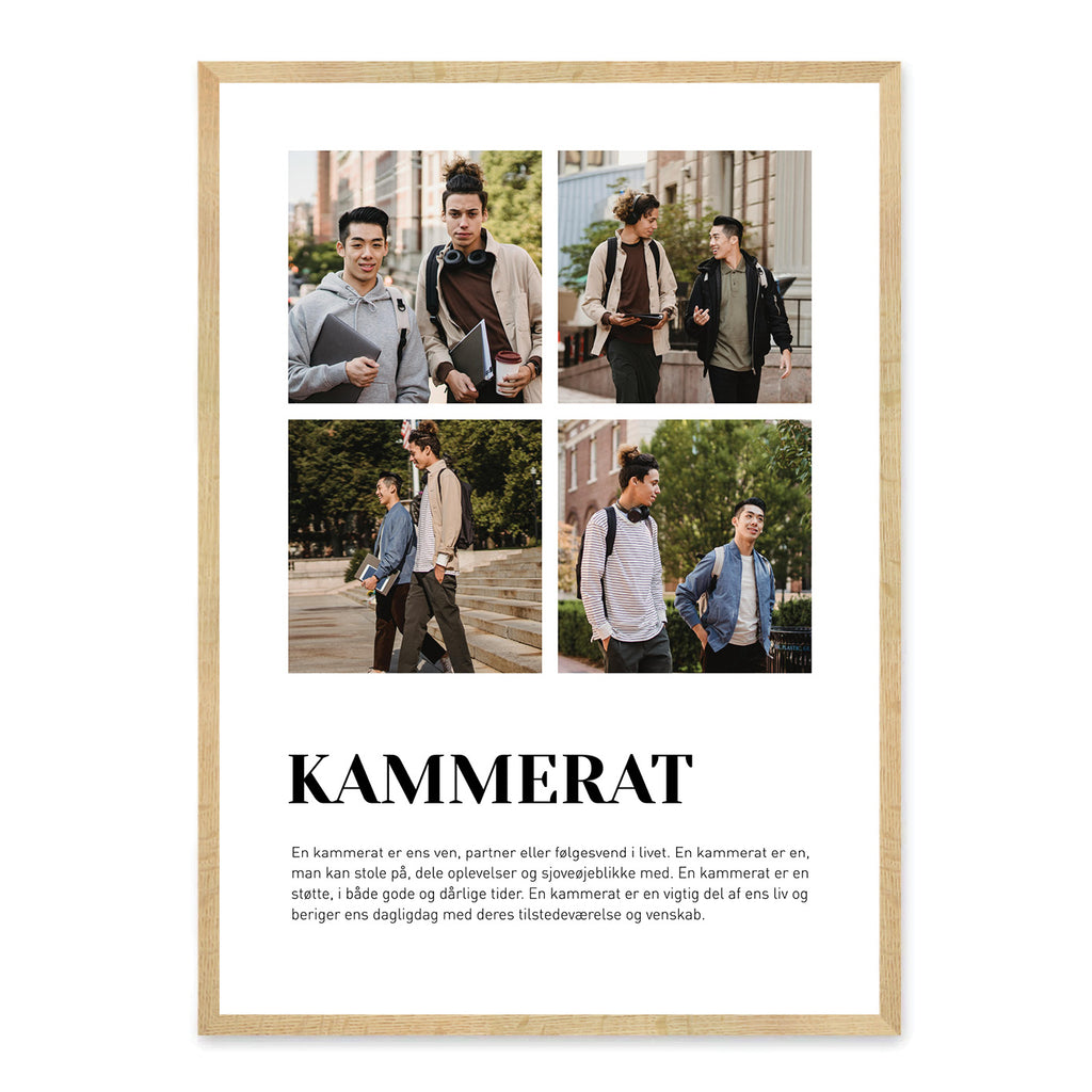 Vælg mellem et design med ét eller fire billeder, og tilføj en færdig tekst fra vores liste – eller skriv din egen. En rørende og betydningsfuld gaveidé til kammerat, som vil værdsætte en personlig og kærlig påmindelse om, hvor meget jeres venskab betyder.