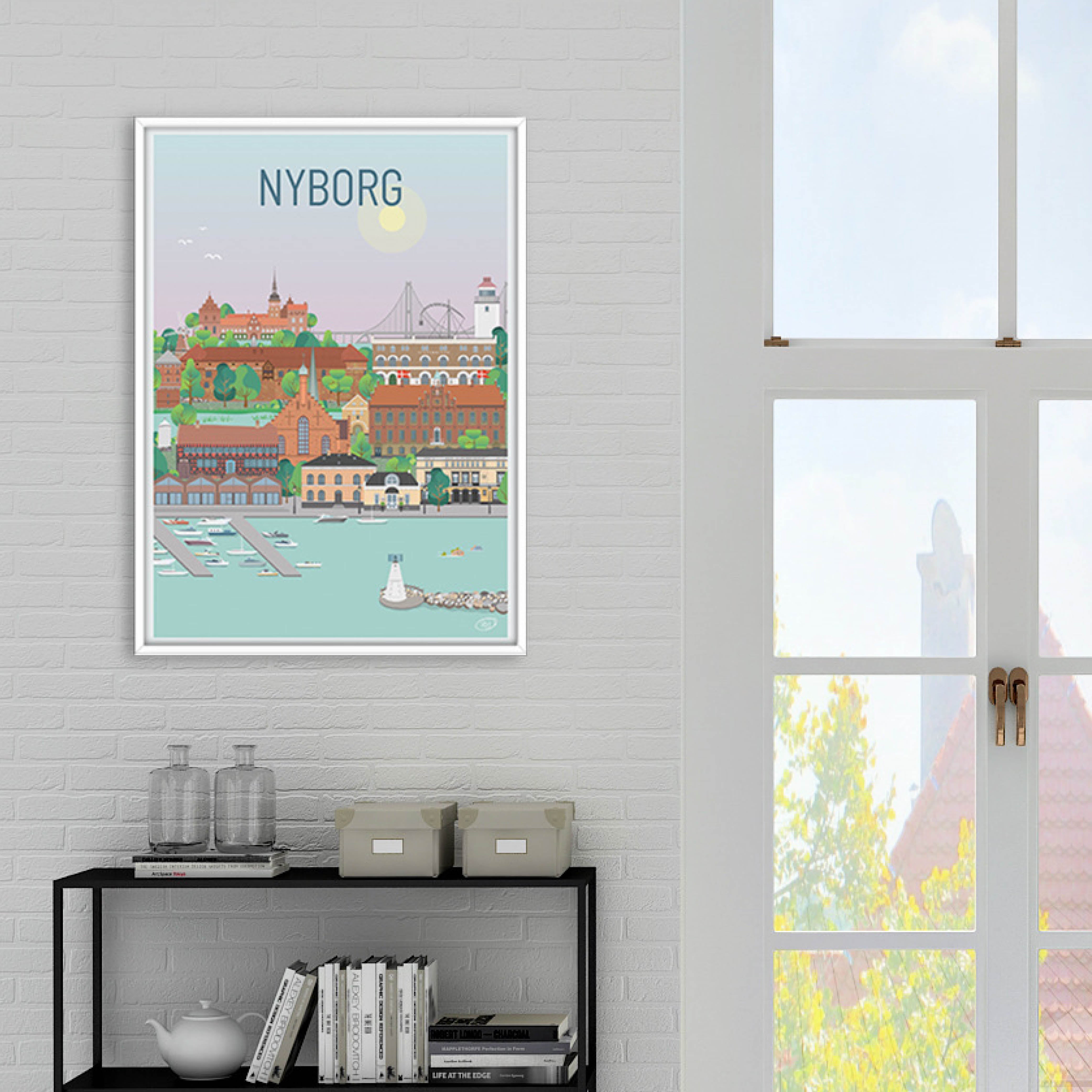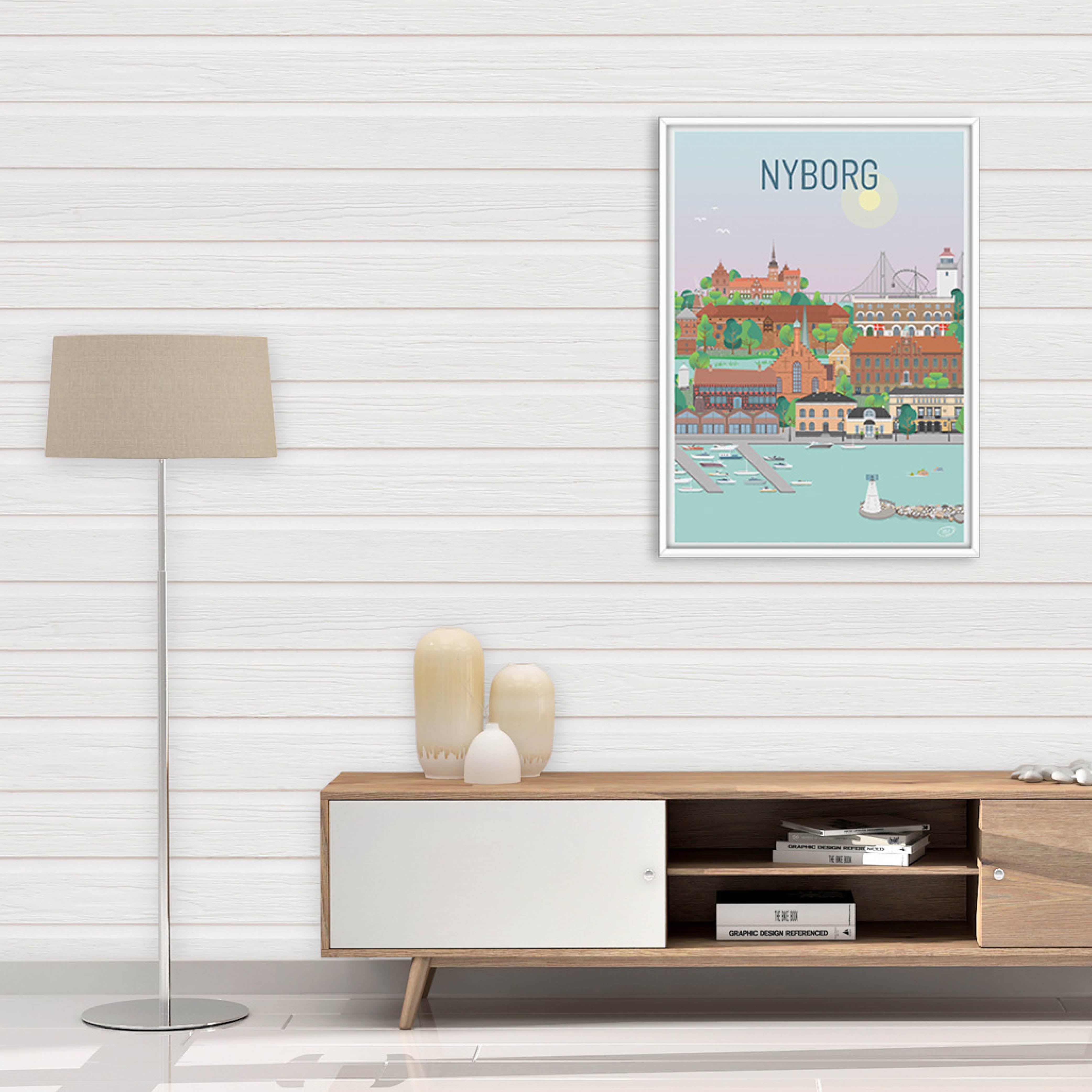En vacker och detaljerad stadsaffisch producerad av Vilakula med motiv av vackra Nyborg. Här har de fångat stämningen i staden samt flera av stadens vackra byggnader. Den vackra Nyborg-affischen är designad i ett färgstarkt universum som vackert kommer att dekorera väggarna i alla hem, och skapar en kontrast till de svartvita hemmen.