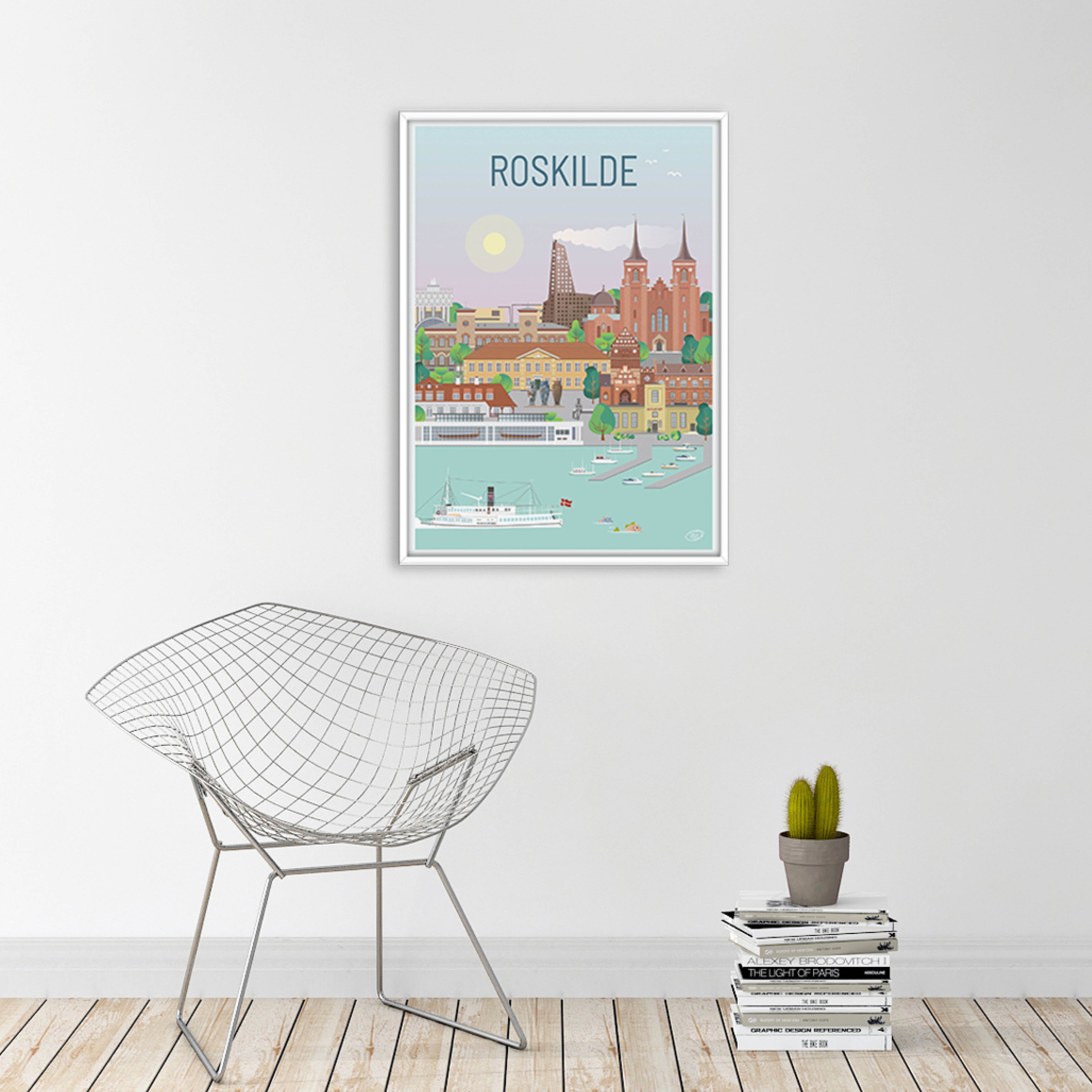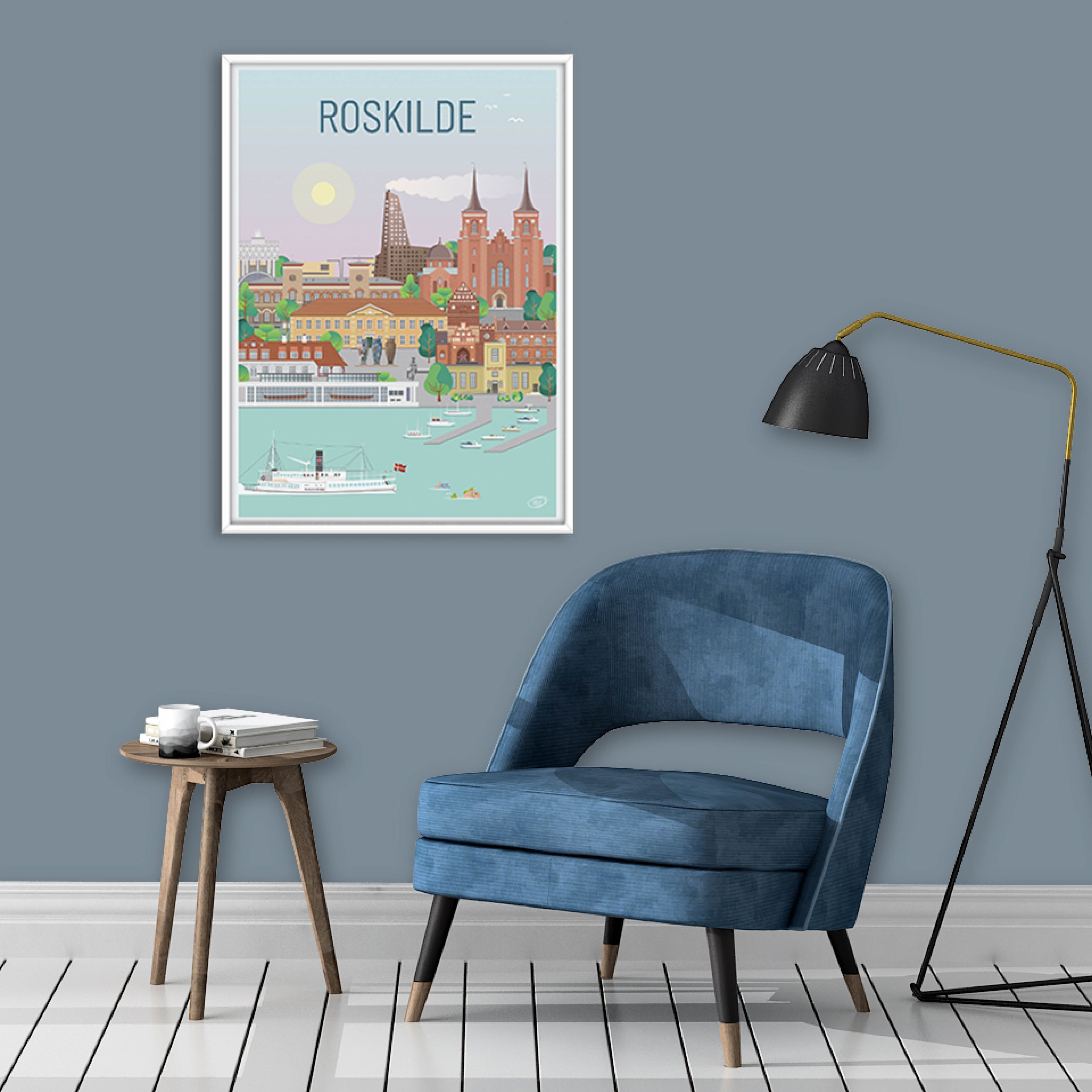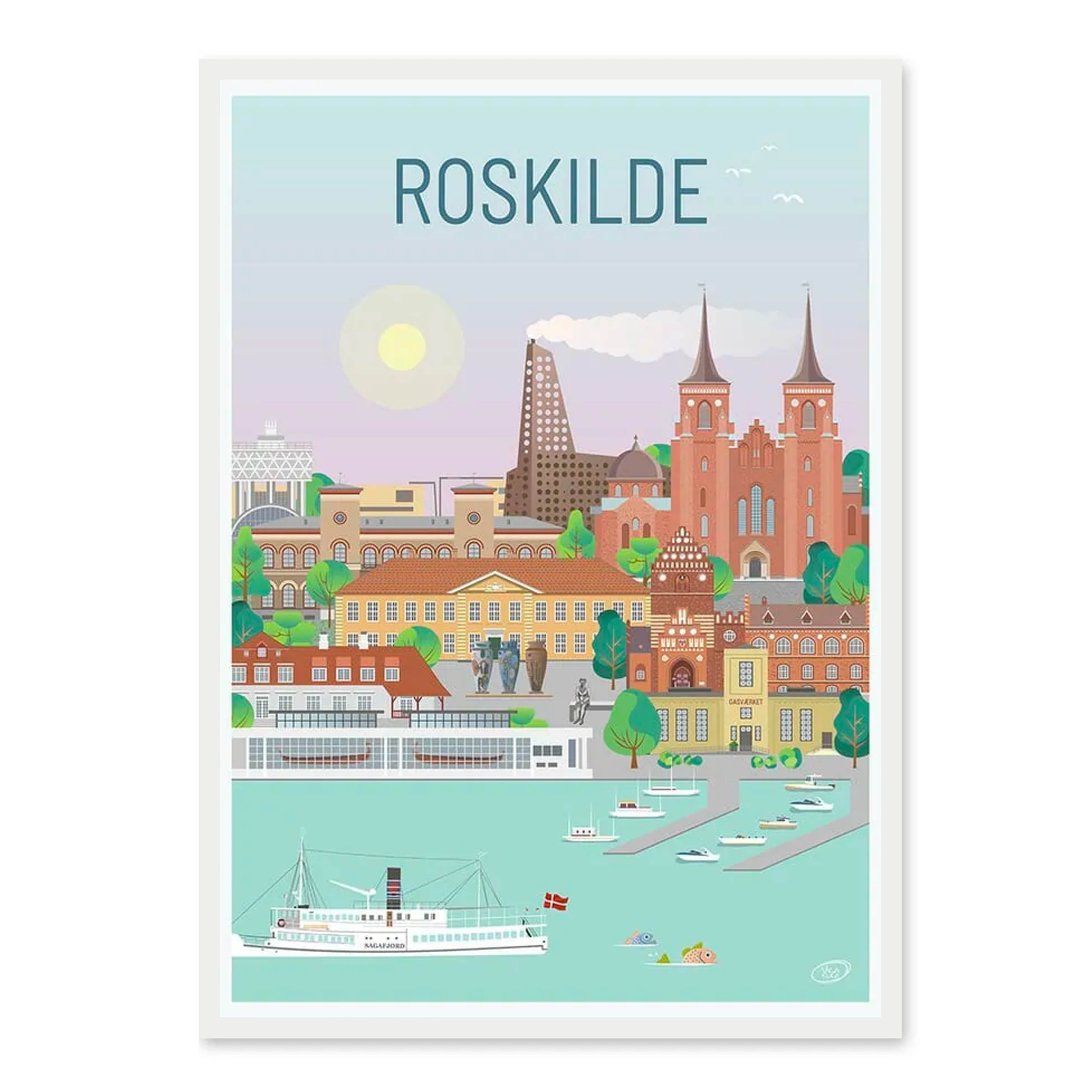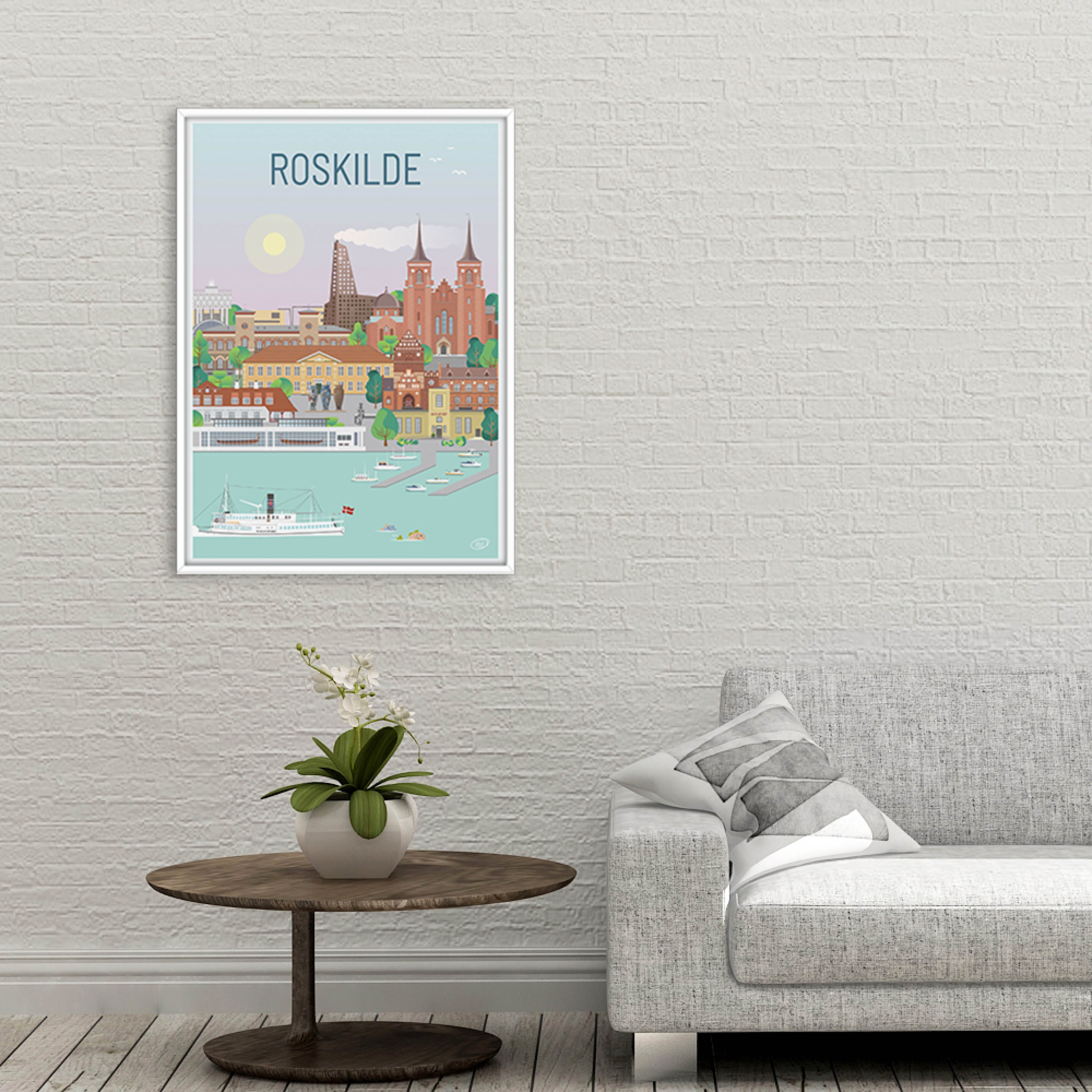 En vacker och detaljerad stadsaffisch producerad av Vilakula med motivet vackra Roskilde. Här har de fångat stämningen i staden samt flera av stadens vackra byggnader. Den vackra Roskilde-affischen är designad i ett färgstarkt universum som vackert kommer att dekorera väggarna i alla hem, och skapar en kontrast till de svartvita hemmen.