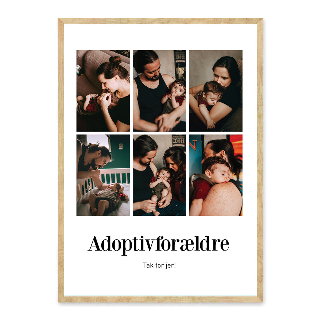 Denne plakat er skabt som en varm hyldest til de adoptivforældre, der har bygget en familie på mod, kærlighed og et hjerte, der rækker længere end ord kan beskrive. For adoptivforældre formes forældreskabet af både ventetid, håb og de øjeblikke, hvor man mærker, at man hører sammen. Pladsen til 6 eller 9 billeder giver mulighed for at samle jeres smukkeste minder og skabe et visuelt bevis på den rejse, der har knyttet jer tættere og tættere sammen.