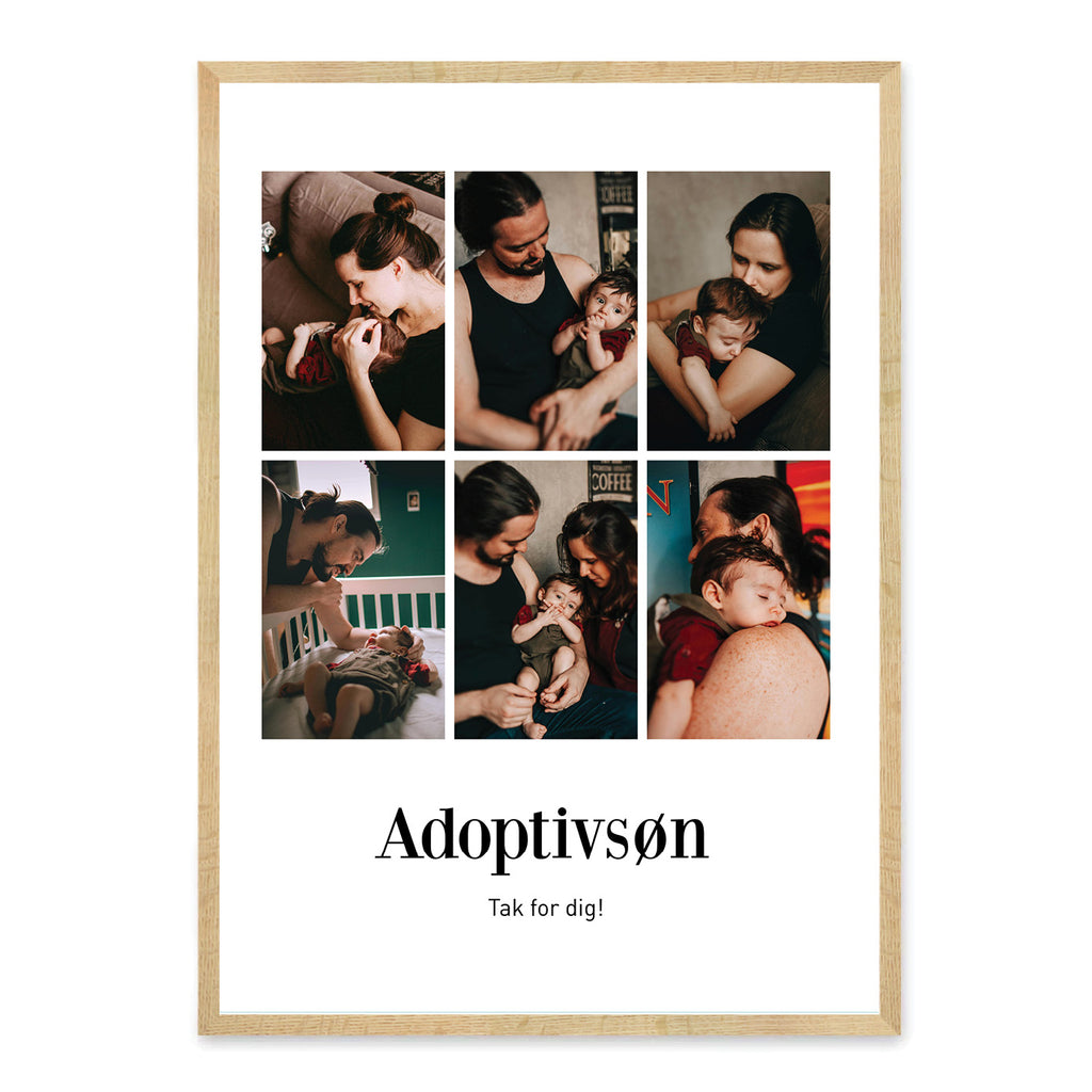 Denne plakat er skabt som en varm hyldest til den rejse, der førte jer sammen som familie. En adoptivsøn bringer nye farver, historier og øjeblikke ind i livet, og kærligheden vokser i takt med, at man igen og igen vælger hinanden. Her kan du samle jeres særlige minder i 6 eller 9 billeder, så plakaten afspejler den unikke fortælling om at finde hinanden på tværs af verden og omstændigheder.