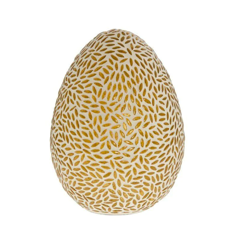 Skab en magisk påskestemning med dette elegante håndlavede påskeæg i smukke hvid- og gule nuancer. Ægget er fremstillet af glas og dekoreret med imponerende mosaikdetaljer, som fanger lyset på en betagende måde. Hvert æg er unikt, da det er håndlavet af dygtige håndværkere, hvilket giver en eksklusiv og kunstnerisk finish.