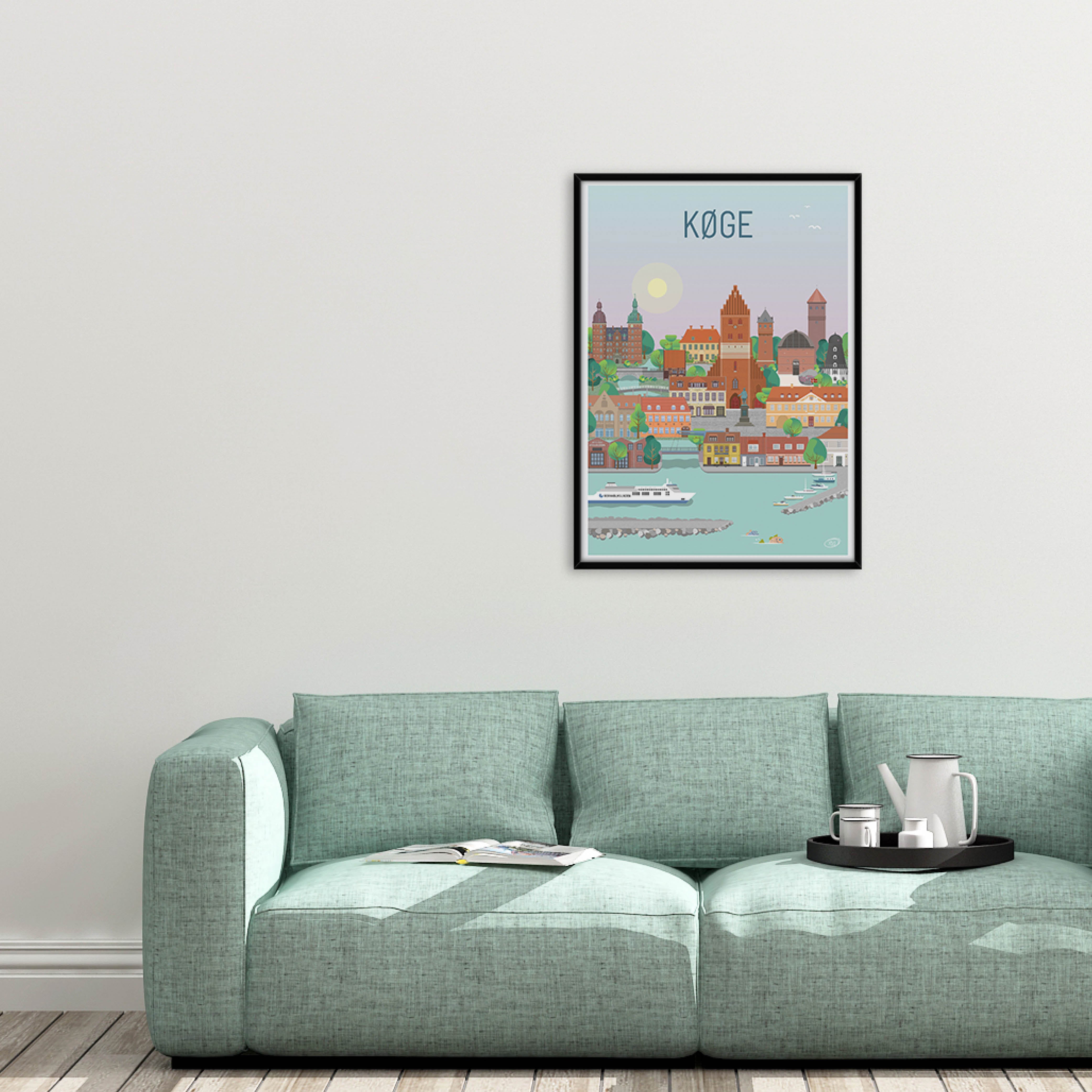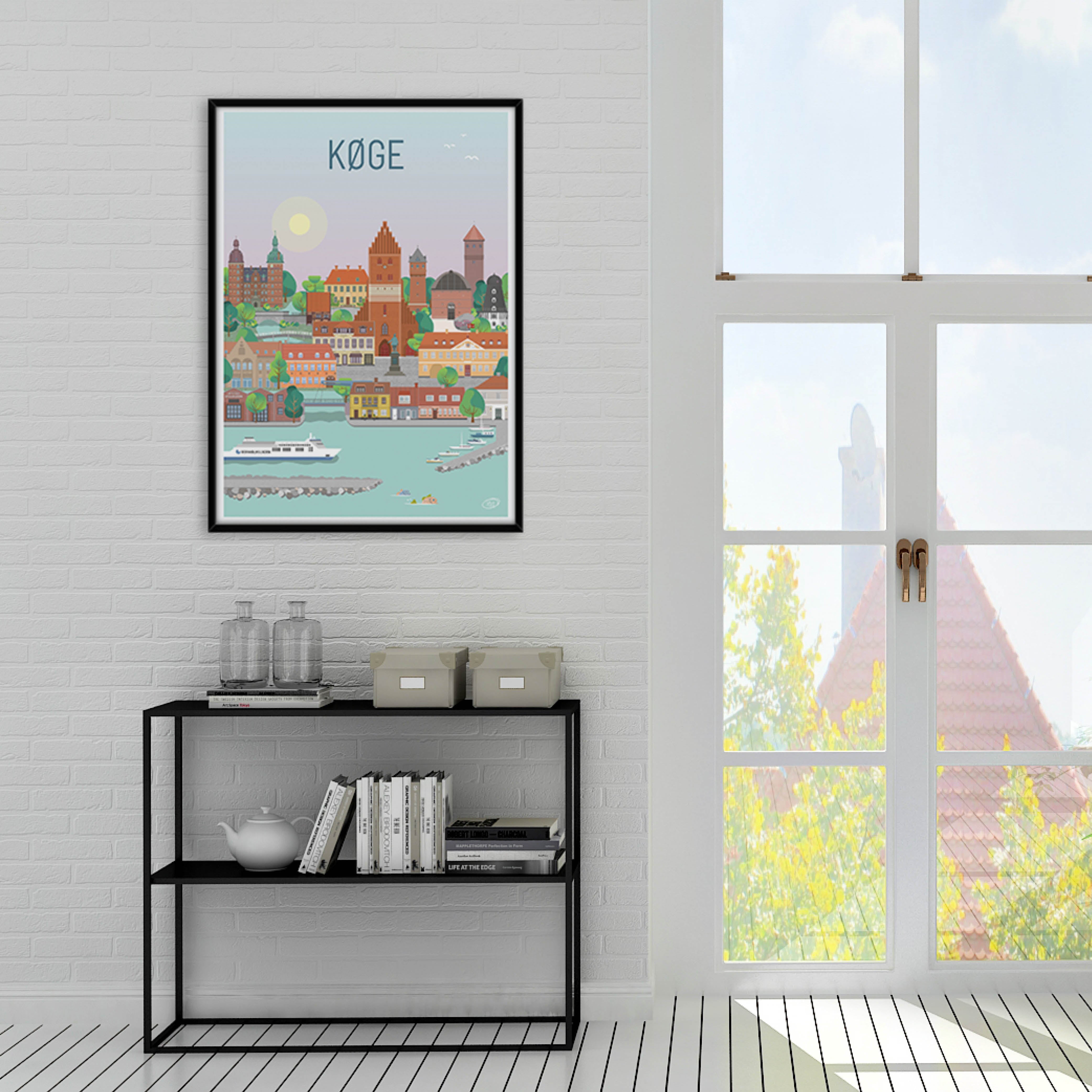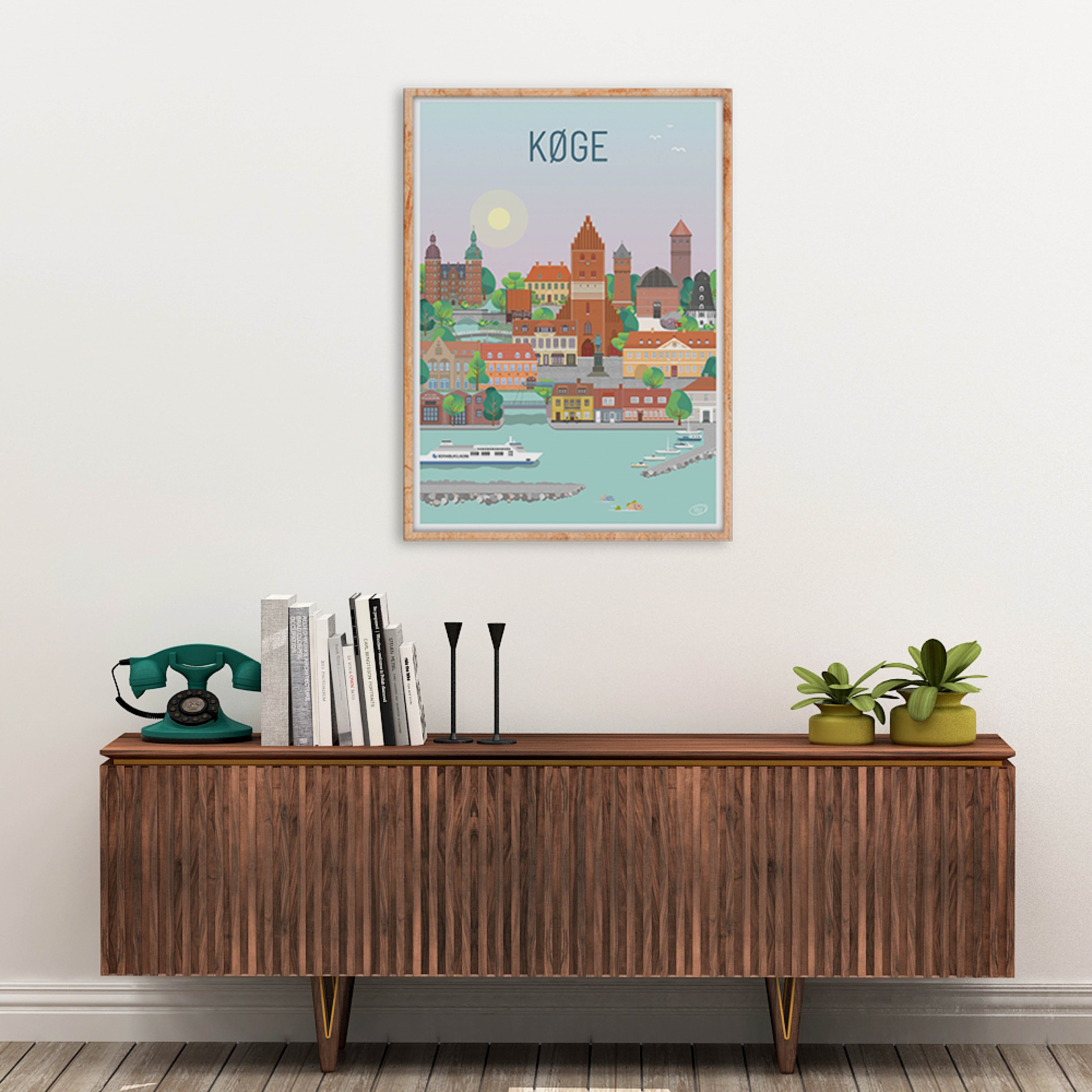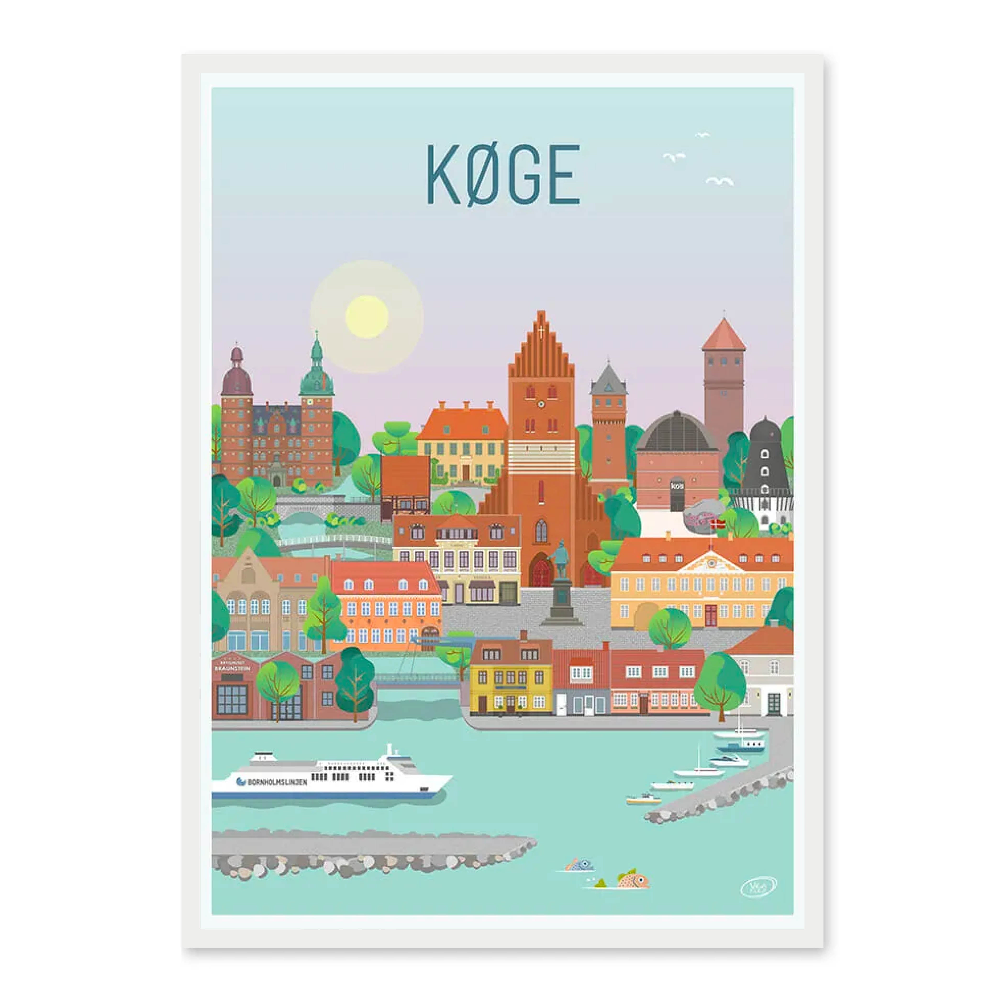 En vacker och detaljerad stadsaffisch utarbetad av Vilakula med motivet vackra Køge Här har de fångat stämningen i staden samt flera av stadens vackra byggnader. Den vackra Køge-affischen är designad i ett färgstarkt universum som vackert kommer att dekorera väggarna i alla hem, och skapar en kontrast till de svartvita hemmen.