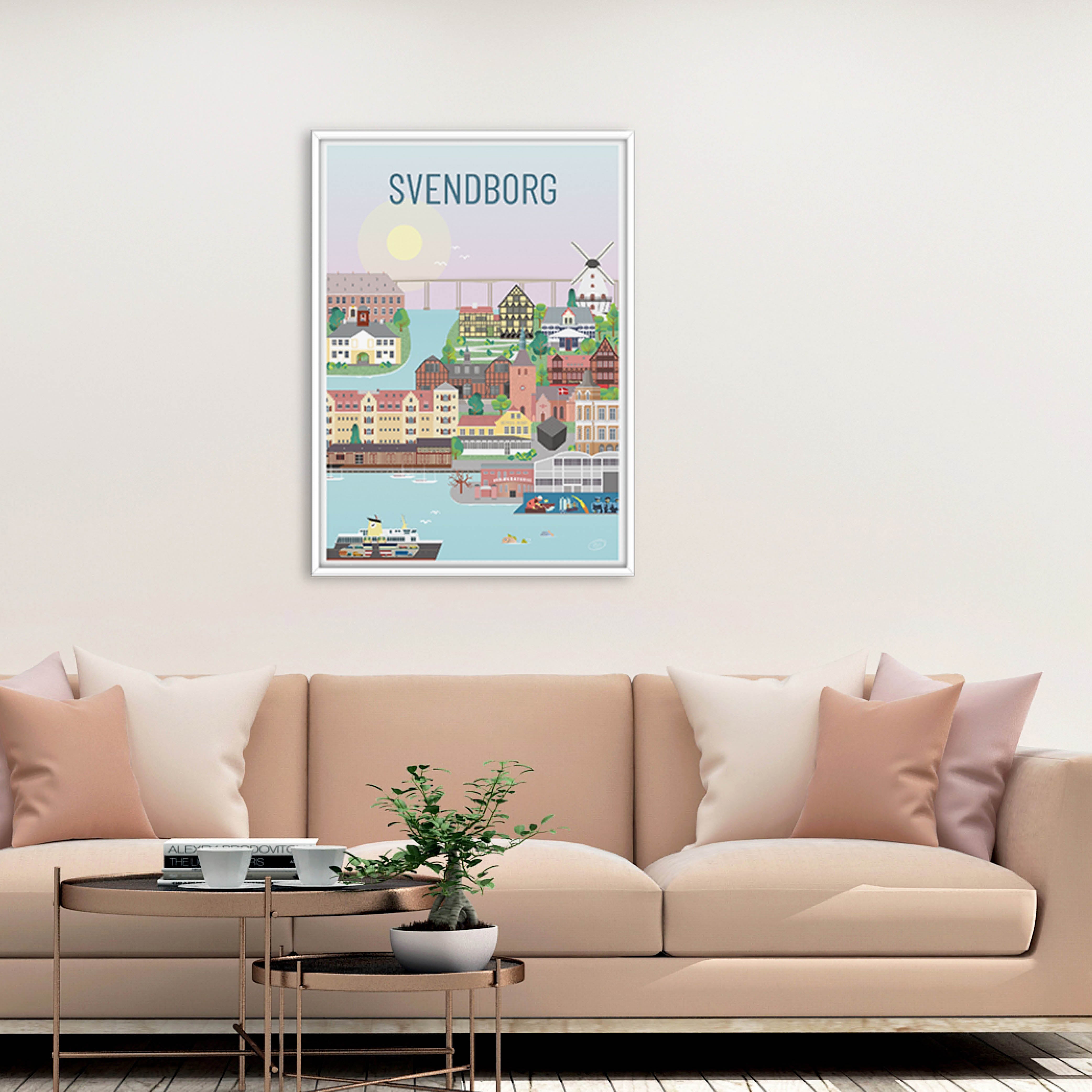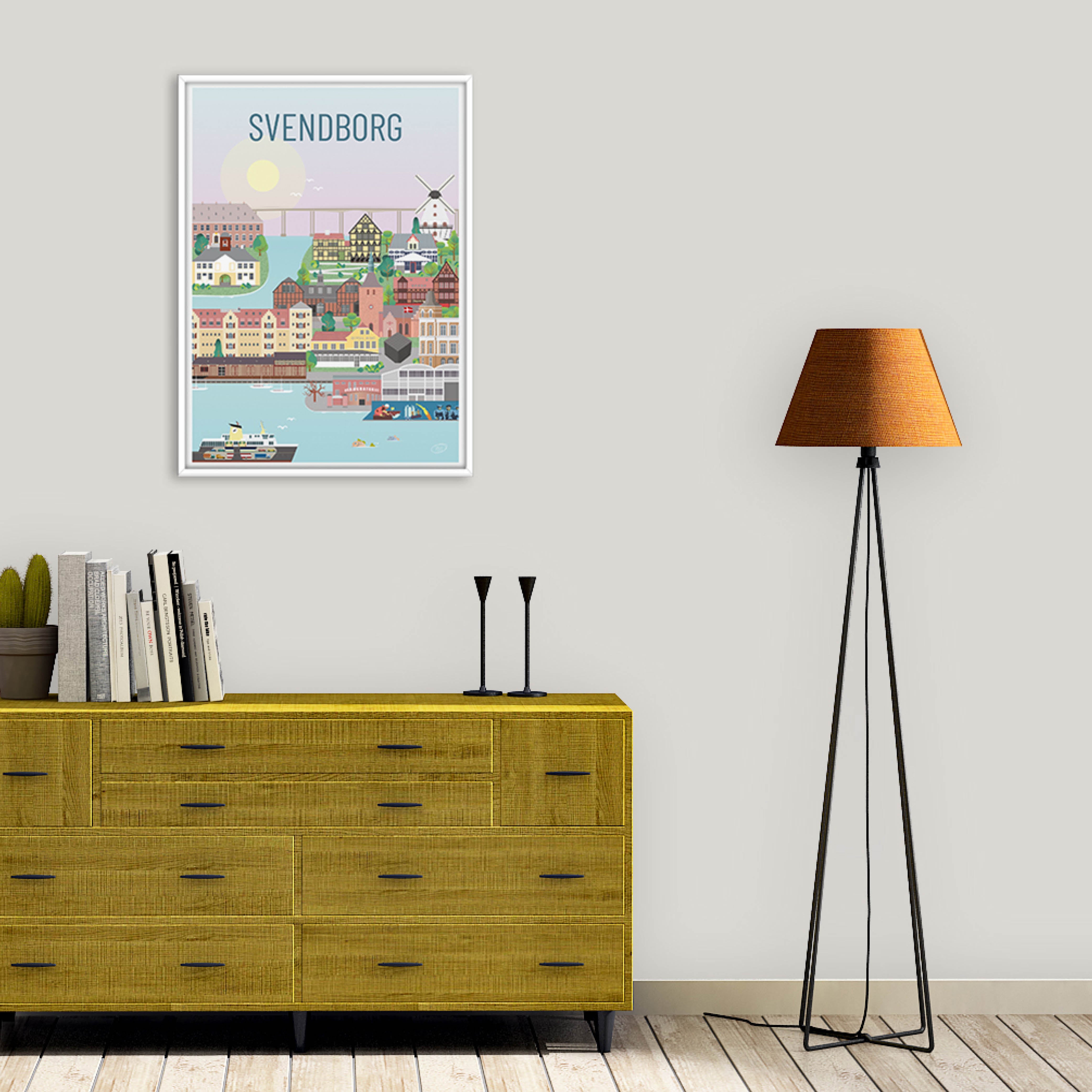 En vacker och detaljerad stadsaffisch producerad av Vilakula med motiv av vackra Svendborg. Här har de fångat stämningen i staden samt flera av stadens vackra byggnader. Den vackra Svendborg poster är designad i ett färgstarkt universum som vackert kommer att dekorera väggarna i alla hem, och skapar en kontrast till de svartvita hemmen.